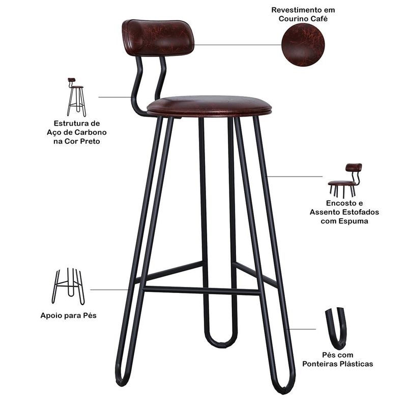 O Kit 02 Banqueta Áris é a escolha ideal para quem busca unir design moderno, conforto e resistência. Com sua estrutura metálica resistente e acabamento refinado, ela combina leveza visual e alta durabilidade. O assento e o encosto são estofados com espuma de alta qualidade, proporcionando maior conforto no uso diário. Possui apoio para os pés, oferecendo mais comodidade, além de pés com ponteiras plásticas que ajudam a proteger o piso. Perfeita para compor áreas gourmet, cozinhas e bancadas, a Banqueta Áris valoriza o ambiente com estilo e funcionalidade. Garanta já a sua! Dimensões da Banqueta (L x A x P) 42 x 98 x 52 cm Altura do chão ao assento: 75 cm Altura do encosto: 11,5 cm Características: Estrutura fixa em aço carbono com pintura epóxi na cor preto. Encosto produzido com Espuma D-22 Assento produzido com Espuma D-28 Revestimento em Courino Café Peso suportado de até 120 kg. Produto entregue desmontado, acompanha manual de montagem. - Por se tratar de estofado as medidas podem ter uma pequena variação de até 3 cm. - A tonalidade do produto real poderá ter ligeira variação devido o lote de tecidos. - A limpeza deve ser feita com pano levemente umedecido em água limpa, sem esfregar, não utilizar produtos abrasivos, desengordurantes, álcool ou solvente. Observações importantes: - Produto para uso residencial em ambiente interno, não devendo ficar exposto diretamente ao sol, calor e umidade excessivos. - Pode haver alguma diferença de tonalidade entre a imagem e o produto real, por conta do tratamento de imagens e a calibração de cores do seu monitor. - As imagens são meramente ilustrativas, não acompanham objetos de decoração e eletrônicos. - Ao receber a mercadoria, o cliente deve verificar as condições da embalagem, caso haja alguma avaria não assine o comprovante de recebimento. - Montagem, desmontagem e outras instalações serão de responsabilidade do cliente. Não nos responsabilizamos, no ato da entrega, por subir escadas/elevadores ou pelo transporte por guincho em apartamentos. Eventuais despesas são de responsabilidade do comprador. - Confira as dimensões do produto e certifique-se de que passará normalmente por supostos elevadores, portas, escadas e/ou corredores de sua residência.