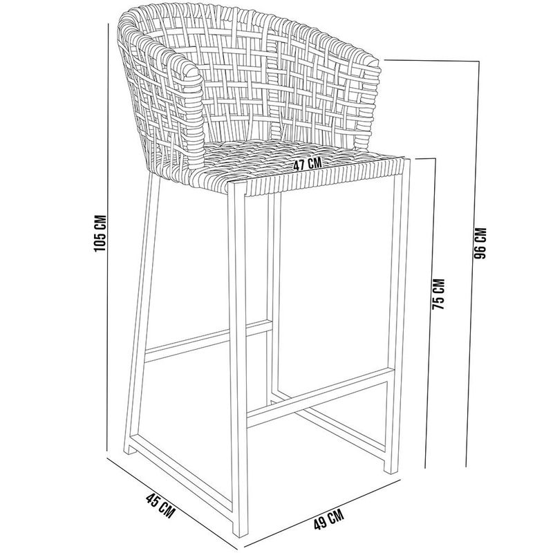 O Kit de Banquetas Porto é a peça ideal para decorar e dispor de conforto e comodidade nos momentos de lazer. O destaque aqui vai para o design artesanal com materiais de altíssima qualidade, como a corda náutica que é um material extremamente elegante na fabricação de móveis para área externa, pela sua beleza, resistência e durabilidade, ou seja, sem erro para criar desde uma decoração simples até uma mais ousada e cheia de personalizações. Pode ser usada perto da piscina, no jardim, sala de estar, varanda e onde mais sua criatividade desejar! Garanta já a sua! Dimensões do Produto (L x A x P) 49 x 105 x 45 cm Medidas Internas: Altura do chão ao assento: 75 cm Altura do chão ao braço: 96 cm Largura do assento:45 cm Características: Estrutura em alumínio. Acabamento em pintura eletrostática a pó na cor Preto, de alta resistência, sendo indicado também para áreas litorâneas. Cordas náuticas produzida com fios de polipropileno na cor Verde. Ponteiras em polietileno injetadas com borda interna para evitar acúmulo de água. Espessura da estrutura: 1,6 mm Suporta até 115 kg. - A tonalidade do produto real poderá ter ligeira variação devido o lote de tecidos. - A limpeza deve ser feita com pano levemente umedecido em água limpa, sem esfregar, não utilizar produtos abrasivos, desengordurantes, álcool ou solvente. - O produto tem aditivo anti enxofre que o torna mais resistente, mas não é recomendada a exposição por tempo indefinido ao sol, chuva, sereno e maresia. - A exposição prolongada ao sol ou maresia, pode causar desbotamento precoce da corda náutica. Observações importantes: - Produto para uso em ambiente interno e externo, não devendo ficar exposto diretamente ao sol, calor e umidade excessivos. - Pode haver alguma diferença de tonalidade entre a imagem e o produto real, por conta do tratamento de imagens e a calibração de cores do seu monitor. - As imagens são meramente ilustrativas, não acompanham objetos de decoração e eletrônicos. - Ao receber a mercadoria, o cliente deve verificar as condições da embalagem, caso haja alguma avaria não assine o comprovante de recebimento. - Montagem, desmontagem e outras instalações serão de responsabilidade do cliente. Não nos responsabilizamos, no ato da entrega, por subir escadas/elevadores ou pelo transporte por guincho em apartamentos. Eventuais despesas são de responsabilidade do comprador. - Confira as dimensões do produto e certifique-se de que passará normalmente por supostos elevadores, portas, escadas e/ou corredores de sua residência.