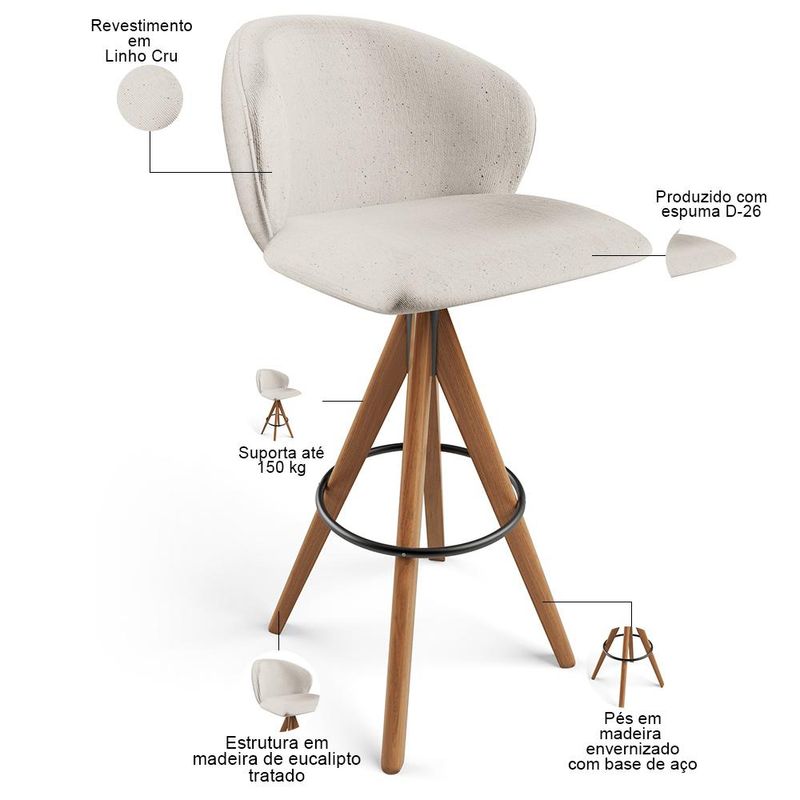 A Banqueta Alta Mia, da Lyam Decor, é a combinação perfeita de design orgânico, conforto e modernidade, expressos em cada detalhe, desde as linhas curvas do assento e encosto até os pés de madeira maciça envernizada. Em outras palavras, essa banqueta estofada é ideal para complementar sua sala de jantar ou estar com elegância e estilo. Além disso, a tapeçaria feita com espuma D-26 oferece um conforto excepcional, permitindo que você desfrute de momentos prazerosos durante suas refeições ou conversas com amigos e familiares. Para completar, essa cadeira de jantar moderna é perfeita para quem busca uma sala de jantar contemporânea, já que seu design único traz uma sensação de beleza e sofisticação ao ambiente e, ainda, harmoniza facilmente com diversos estilos de mesa de jantar. A Banqueta Mia é o equilíbrio perfeito entre funcionalidade e design, uma vez que pode facilmente ser utilizada em diversos ambientes, como área gourmet, cozinhas, bancadas e até em eventos eventos. Adicione esse elemento indispensável à sua decoração e transforme qualquer ambiente em um lugar especial. Não perca a oportunidade de adquirir essa banqueta alta que vai encantar a todos. Então, que tal garantir bem-estar e beleza em um único produto? Adquira agora a Banqueta Mia e transforme seu ambiente em um espaço acolhedor, elegante e cheio de personalidade. Dimensões do produto (L x A x P) 50 cm x 98,5 cm x 47 cm Medidas internas Altura do assento ao chão: 74 cm Profundidade do assento: 39,5 cm Largura do assento: 49 cm Altura do encosto: 28 cm Largura do encosto: 50 cm Altura do chão á base: 29,5 cm Características: Estrutura de Madeira de Eucalipto tratado de reserva legalizada, correto ecologicamente. Revestimento em Linho na cor Cru. Assento e encosto com espuma D-26. Peso máximo suportado por banqueta até 150 kg. Pés em madeira envernizados. Design orgânico, com linhas curvas. Produto entregue montado. - Por se tratar de estofado as medidas podem ter uma pequena variação de até 3 cm. - A tonalidade do produto real poderá ter ligeira variação devido o lote de tecidos. - A limpeza deve ser feita com pano levemente umedecido em água limpa, sem esfregar, não utilizar produtos abrasivos, desengordurantes, álcool ou solvente. Observações importantes: - Produto para uso residencial em ambiente interno, não devendo ficar exposto diretamente ao sol, calor e umidade excessivos. - Pode haver alguma diferença de tonalidade entre a imagem e o produto real, por conta do tratamento de imagens e a calibração de cores do seu monitor. - As imagens são meramente ilustrativas, não acompanham objetos de decoração e eletrônicos. - Ao receber a mercadoria, o cliente deve verificar as condições da embalagem, caso haja alguma avaria não assine o comprovante de recebimento. - Montagem, desmontagem e outras instalações serão de responsabilidade do cliente. Não nos responsabilizamos, no ato da entrega, por subir escadas/elevadores ou pelo transporte por guincho em apartamentos. Eventuais despesas são de responsabilidade do comprador. - Confira as dimensões do produto e certifique-se de que passará normalmente por supostos elevadores, portas, escadas e/ou corredores de sua residência.