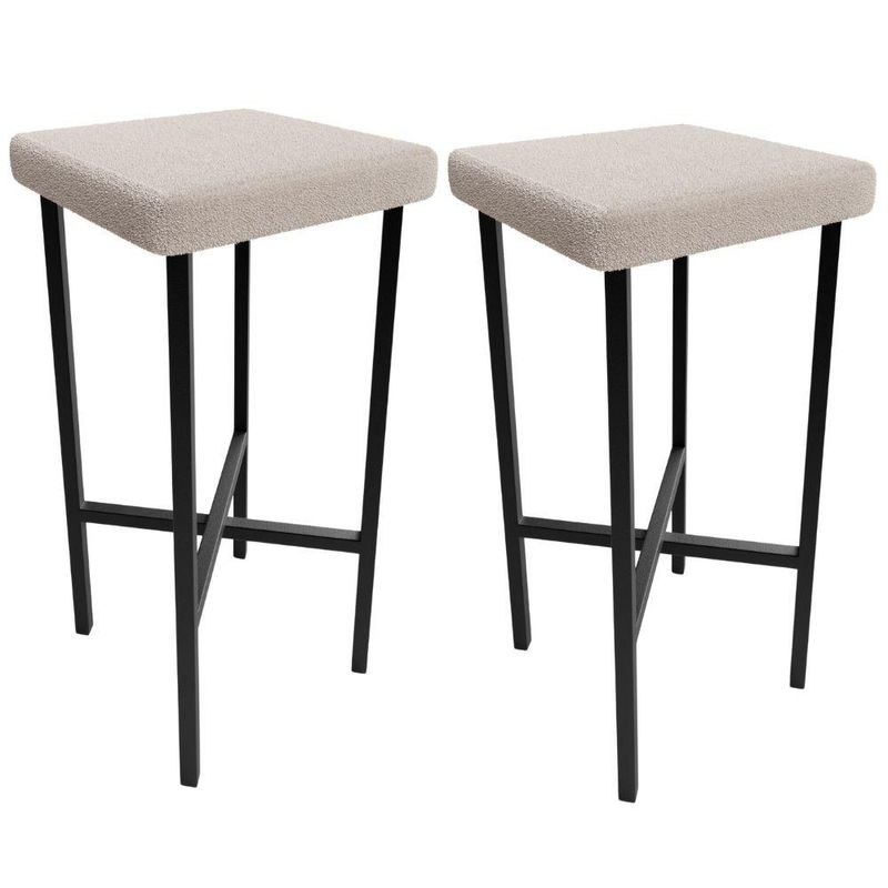 Kit 02 Banquetas Alta Bar Cozinha Sala De Jantar Preto Stella L02 Bouclê Creme - Lyam Decor