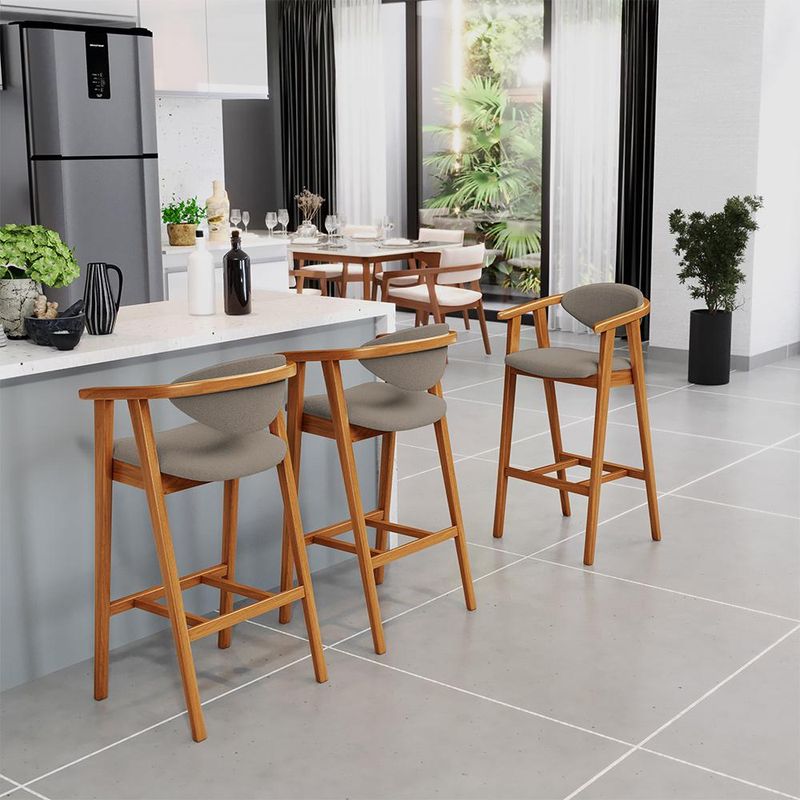 A melhor escolha para os momentos de confraternização no aconchego da sua casa, acaba de chegar! O Kit 02 Banquetas Altas Cecília vem com a personalidade e elegância que sua decoração merece! É ideal desde refeições rápidas, até um Happy Hour com os amigos, família. Seu design único valoriza o ambiente, sem deixar pra trás a beleza e qualidade! Para deixar a sua área gourmet mais aconchegante, ela possui assento e encosto estofados, confeccionados com materiais de excelente qualidade, e extremamente resistentes. Possui altura ideal, garantindo o encaixe perfeito no ambiente, otimizando seu espaço e promovendo máximo conforto. Pode ser usada em bancada, cozinha americana, home bar, ou área gourmet! As possibilidades são infinitas e as combinações ficarão extremamente elegantes. Adquira já a sua! Dimensões do produto (L x A x P) 51 x 102 x 47 cm Medidas Internas: Altura do encosto: 22 cm Altura total do encosto: 33 cm Largura do encosto: 41 cm Altura do assento: 4,5 cm Altura do chão ao braço: 88 cm Profundidade do assento: 46,5 cm Largura do assento: 44 cm Altura interna do braço: 18 cm Altura do chão ao assento: 70 cm Altura do chão ao apoio de pés: 30 cm Altura do apoio de pés: 4,5 cm Largura interna do apoio de pés: 27 cm Características: Estrutura em madeira de reflorestamento de eucalipto vermelho tratado. Revestimento em Bouclê na cor Bege. Assento com espuma D-28. Encosto com espuma D-28. Peso suportado: Até 140 kg. Estrutura de Madeira na cor Nozes. Produto entregue montado. - Por se tratar de estofado as medidas podem ter uma pequena variação de até 3 cm. - A tonalidade do produto real poderá ter ligeira variação devido o lote de tecidos. - A limpeza deve ser feita com pano levemente umedecido em água limpa, sem esfregar, não utilizar produtos abrasivos, desengordurantes, álcool ou solvente. - Nunca sentar nos braços ou encosto do produto. Observações importantes: - Produto para uso residencial em ambiente interno, não devendo ficar exposto diretamente ao sol, calor e umidade excessivos. - Pode haver alguma diferença de tonalidade entre a imagem e o produto real, por conta do tratamento de imagens e a calibração de cores do seu monitor. - As imagens são meramente ilustrativas, não acompanham objetos de decoração e eletrônicos. - Ao receber a mercadoria, o cliente deve verificar as condições da embalagem, caso haja alguma avaria não assine o comprovante de recebimento. - Montagem, desmontagem e outras instalações serão de responsabilidade do cliente. Não nos responsabilizamos, no ato da entrega, por subir escadas/elevadores ou pelo transporte por guincho em apartamentos. Eventuais despesas são de responsabilidade do comprador. - Confira as dimensões do produto e certifique-se de que passará normalmente por supostos elevadores, portas, escadas e/ou corredores de sua residência.
