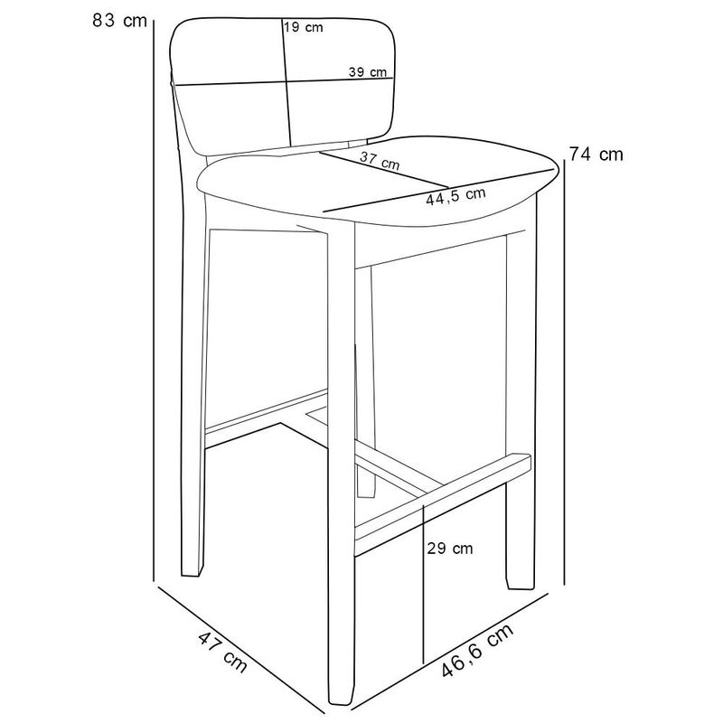 Na cozinha ou qualquer outro ambiente, a Banqueta Dara se destaca por seu design clássico, sem deixar de exaltar a delicadeza deste modelo. Com uma estrutura de madeira que exala nobreza e sofisticação, essa banqueta estofada é o convite perfeito para momentos de confraternizar. O estofado macio, harmoniza com os demais elementos do ambiente, além do encosto proporcionar muito conforto enquanto se desfruta de momentos incríveis com aconchego. A vida é feita de pequenas celebrações, e essa banqueta está pronta para torná-las ainda mais especiais. Adicione ao seu carrinho e aproveite! Dimensões da Banqueta (L x A x P) 46,6 cm x 83 cm x 47 cm Medidas Internas Altura do chão ao assento: 74 cm Largura do assento: 44,5 cm Profundidade livre do assento: 37 cm Altura do encosto: 19 cm Largura do encosto: 39 cm Altura do apoio de pé ao chão: 29 cm Características: Estrutura em madeira de reflorestamento Taeda com acabamento envernizado na tonalidade Castanho. Revestimento em Couríssimo Camel. Encosto com acabamento em debrum. Assento estofado fixo composto por espuma D-26. Suporta até 150 kg. Produto entregue montado. - Por se tratar de estofado as medidas podem ter uma pequena variação de até 3 cm. - A tonalidade do produto real poderá ter ligeira variação devido o lote de tecidos. - A limpeza deve ser feita com pano levemente umedecido em água limpa, sem esfregar, não utilizar produtos abrasivos, desengordurantes, álcool ou solvente. Observações importantes: - Produto para uso residencial em ambiente interno, não devendo ficar exposto diretamente ao sol, calor e umidade excessivos. - Pode haver alguma diferença de tonalidade entre a imagem e o produto real, por conta do tratamento de imagens e a calibração de cores do seu monitor. - As imagens são meramente ilustrativas, não acompanham objetos de decoração e eletrônicos. - Ao receber a mercadoria, o cliente deve verificar as condições da embalagem, caso haja alguma avaria não assine o comprovante de recebimento. - Montagem, desmontagem e outras instalações serão de responsabilidade do cliente. Não nos responsabilizamos, no ato da entrega, por subir escadas/elevadores ou pelo transporte por guincho em apartamentos. Eventuais despesas são de responsabilidade do comprador. - Confira as dimensões do produto e certifique-se de que passará normalmente por supostos elevadores, portas, escadas e/ou corredores de sua residência.