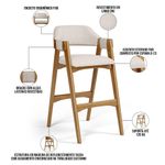 Na cozinha ou qualquer outro ambiente, o Kit 02 Banquetas Altas Suran, da Lyam Decor, se destaca com seu design moderno e elegante. Com uma estrutura de madeira que exala sofisticação, essa banqueta estofada é o convite perfeito para momentos de descontração e sabor. O estofado macio, harmoniza com os demais elementos do ambiente, além de proporcionar conforto enquanto se saboreia um café da manhã preguiçoso ou uma taça de vinho ao entardecer. Já o encosto curvo e os braços delicadamente projetados abraçam o corpo, transformando cada instante em uma experiência acolhedora. Ideal para a ilha gourmet, onde a criatividade culinária ganha vida, ou para um barzinho que respira estilo, essa banqueta é mais do que um móvel; é um ponto de encontro, um espaço de risadas e histórias compartilhadas. Em cada assento, a promessa de momentos memoráveis. A vida é feita de pequenas celebrações, e essa banqueta alta está pronta para torná-las ainda mais especiais. Adicione ao seu carrinho e aproveite! Dimensões da Banqueta (L x A x P) 54 cm x 105 cm x 72 cm Medidas Internas Largura do assento: 46 cm Profundidade livre do assento: 46 cm Altura do encosto: 30 cm Altura interna dos braços: 16 cm Altura dos braços ao chão: 93 cm Altura do assento ao chão: 76 cm Altura do apoio de pé ao chão: 36 cm Características: Estrutura em madeira de reflorestamento Taeda com acabamento envernizado na tonalidade Castanho. Revestimento em Linho de alta qualidade na tonalidade Cru. Encosto ergonômico fixo. Assento estofado fixo composto por espuma D-23. Braços com alças laterais revestidas. Suporta até 120 kg cada. Produto entregue montado. - Por se tratar de estofado as medidas podem ter uma pequena variação de até 3 cm. - A tonalidade do produto real poderá ter ligeira variação devido o lote de tecidos. - A limpeza deve ser feita com pano levemente umedecido em água limpa, sem esfregar, não utilizar produtos abrasivos, desengordurantes, álcool ou solvente. Observações importantes: - Produto para uso residencial em ambiente interno, não devendo ficar exposto diretamente ao sol, calor e umidade excessivos. - Pode haver alguma diferença de tonalidade entre a imagem e o produto real, por conta do tratamento de imagens e a calibração de cores do seu monitor. - As imagens são meramente ilustrativas, não acompanham objetos de decoração e eletrônicos. - Ao receber a mercadoria, o cliente deve verificar as condições da embalagem, caso haja alguma avaria não assine o comprovante de recebimento. - Montagem, desmontagem e outras instalações serão de responsabilidade do cliente. Não nos responsabilizamos, no ato da entrega, por subir escadas/elevadores ou pelo transporte por guincho em apartamentos. Eventuais despesas são de responsabilidade do comprador. - Confira as dimensões do produto e certifique-se de que passará normalmente por supostos elevadores, portas, escadas e/ou corredores de sua residência.