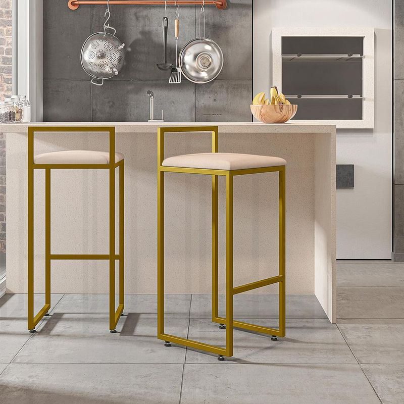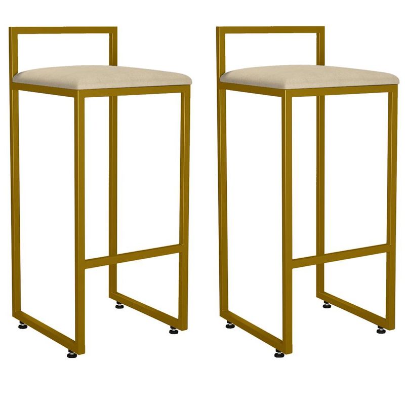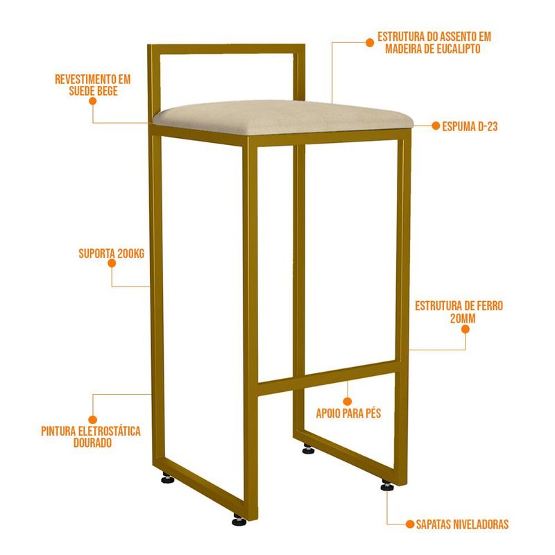 O seu sonho é ter uma cozinha integrada? Uma banqueta pode ser fator determinante para ajudar nesta tarefa, principalmente se você contar com o modelo Kit 02 Banquetas Altas Para Cozinha Sala De Jantar Hanna L02 Dourado Suede Bege - Lyam Decor. Ideal para quem deseja montar uma cozinha americana ou agregar valor à sua área gourmet, o modelo possui design slim que é super apropriado para apartamentos ou para quem tem uma cozinha compacta. Outro ponto positivo é que este modelo não possui braços, sendo assim ocupa menos espaço e torna melhor para circulação. Ah, também possui apoio para os pés, elemento fundamental para a ergonomia e conforto. As opções de uso são infinitas, seja para um living, recepção, hall de entrada, sala de jantar, área gourmet ou ambiente corporativo. Para ter um espaço vital procure a distância mínima de 50 cm entre as banquetas. Desta forma a organização ficará harmônica e muito confortável para utilização. Dimensões do produto (A x L x P) 81 x 35 x 36 cm Altura do assento ao chão: 66 cm Características: Estrutura de Ferro com espessura de 20mm. Acabamento em pintura eletrostática cor Dourado. Estrutura do assento em Madeira de Eucalipto. Assento fixo com espuma certificada D-23. Revestimento Suede Bege. Sapatas Niveladoras. Peso suportado: Até 150 kg. - Por se tratar de estofado as medidas podem ter uma pequena variação de até 3 cm. - A tonalidade do produto real poderá ter ligeira variação devido o lote de tecidos. Observações importantes: - Produto para uso residencial em ambiente interno, não devendo ficar exposto diretamente ao sol, calor e umidade excessivos. - Pode haver alguma diferença de tonalidade entre a imagem e o produto real, por conta do tratamento de imagens e a calibração de cores do seu monitor. - As imagens são meramente ilustrativas, não acompanham objetos de decoração e eletrônicos. - Ao receber a mercadoria, o cliente deve verificar as condições da embalagem, caso haja alguma avaria não assine o comprovante de recebimento. - Montagem, desmontagem e outras instalações serão de responsabilidade do cliente. Não nos responsabilizamos, no ato da entrega, por subir escadas/elevadores ou pelo transporte por guincho em apartamentos. Eventuais despesas são de responsabilidade do comprador. - Confira as dimensões do produto e certifique-se de que passará normalmente por supostos elevadores, portas, escadas e/ou corredores de sua residência.