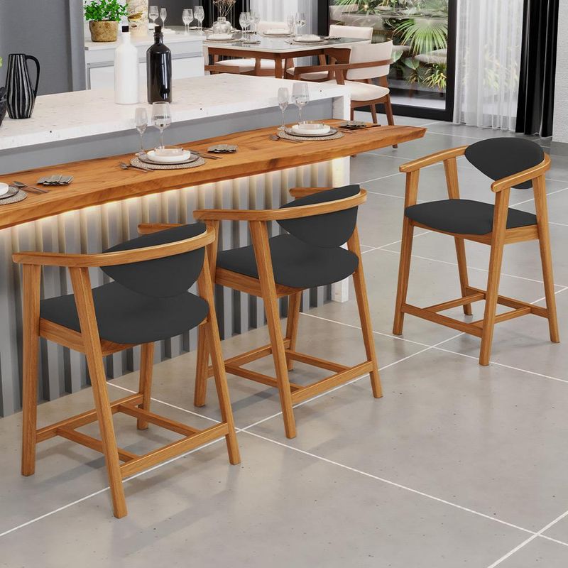 Crie um ambiente sofisticado e acolhedor com o Kit 02 Banquetas Baixa Cecília, da Lyam Decor.Com design moderno essa banqueta é uma peça muito versátil, pois você pode aproveitá-la em diversos ambientes, desde cozinha, sala de jantar, bancada até a área gourmet ou bar e, assim, agregar o máximo de beleza e conforto. Afinal, essa banqueta de madeira se destaca pela sua estrutura robusta que resistência e durabilidade. Já o assento estofado oferece o máximo conforto, enquanto o encosto proporciona suporte ergonômico sem igual. Combinando elegância e praticidade, essa banqueta baixa com encosto é perfeita para quem deseja um toque de requinte em qualquer ambiente. Adicione um charme especial ao seu lar com essa peça indispensável. Adicione ao seu carrinho e desfrute momentos de alegria com a Banqueta Cecília! Dimensões da Banqueta (L x A x P) 51 x 90 x 47 cm Medidas Internas: Altura do chão ao assento: 60 cm Assento livre (L x A x P): 44 x 4,5 x 46,5 cm Encosto livre (L x A): 41 x 22 cm Altura total do encosto: 33 cm Altura interna do braço: 18 cm Altura do chão ao início do braço: 76 cm Altura do chão ao apoio de pés: 17 cm Largura interna do apoio de pés: 27 cm Altura do apoio de pés: 4,5 cm Características: Estrutura em madeira de reflorestamento de eucalipto vermelho tratado. Revestimento em tecido Suede de alta qualidade na cor Preto. Assento e encosto fixos tapeçados com espuma D-28. Encosto com design curvo para maior conforto e ergonomia. Pés em madeira maciça envernizada na cor Nozes. Peso suportado: Até 120 kg. - Nunca sentar nos braços ou encosto do produto. - Por se tratar de estofado as medidas podem ter uma pequena variação de até 3 cm. - A tonalidade do produto real poderá ter ligeira variação devido o lote de tecidos. - Indicado para uso residencial, sua limpeza deve ser feita com pano levemente umedecido em água limpa, sem esfregar, não utilizar produtos abrasivos, desengordurantes, álcool ou solvente. Observações importantes: - Produto para uso residencial em ambiente interno, não devendo ficar exposto diretamente ao sol, calor e umidade excessivos. - Pode haver alguma diferença de tonalidade entre a imagem e o produto real, por conta do tratamento de imagens e a calibração de cores do seu monitor. - As imagens são meramente ilustrativas, não acompanham objetos de decoração e eletrônicos. - Ao receber a mercadoria, o cliente deve verificar as condições da embalagem, caso haja alguma avaria não assine o comprovante de recebimento e entre em contato com nossa loja para orientações. - Montagem, desmontagem e outras instalações serão de responsabilidade do cliente. Não nos responsabilizamos, no ato da entrega, por subir escadas/elevadores ou pelo transporte por guincho em apartamentos. Eventuais despesas são de responsabilidade do comprador. - Confira as dimensões do produto e certifique-se de que passará normalmente por supostos elevadores, portas, escadas e/ou corredores de sua residência. - Para mais informações, acesse nossa Central de Atendimento.