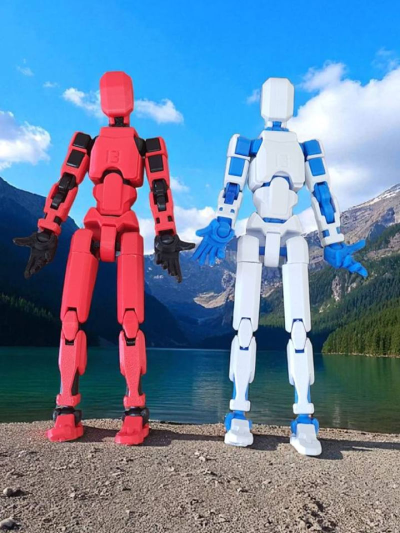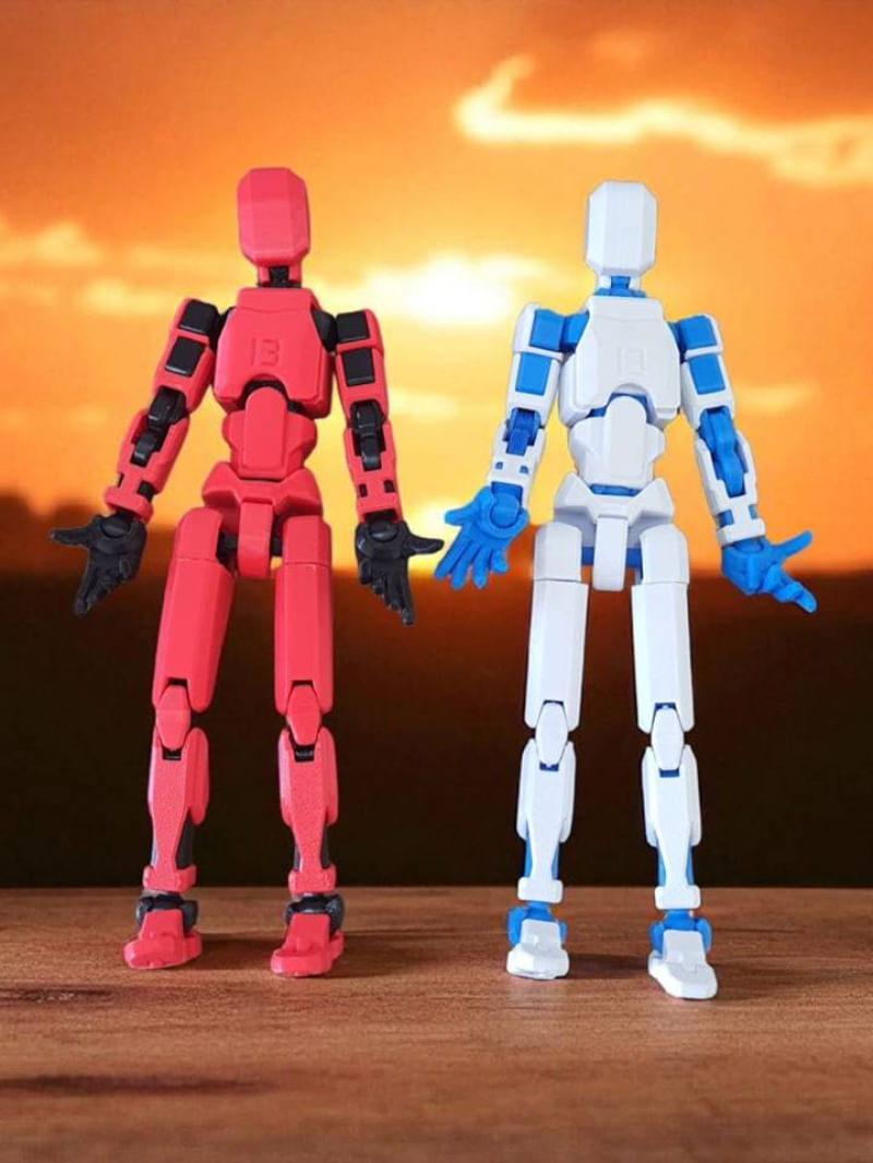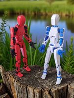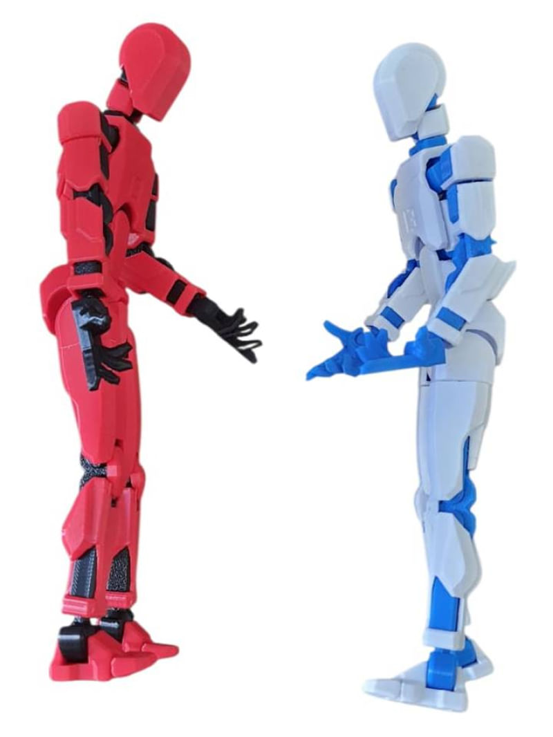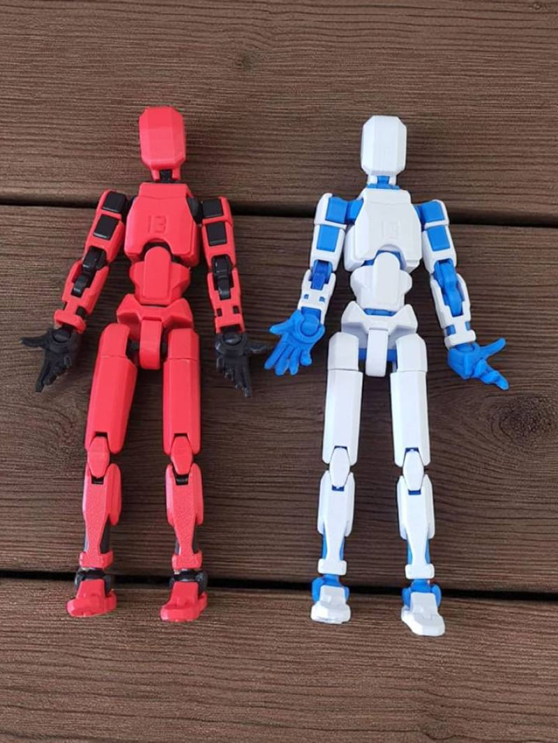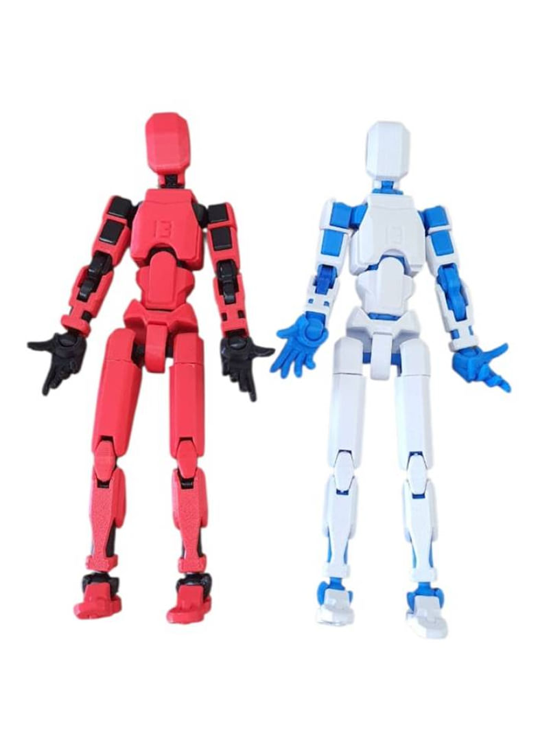 Kit 02 Bonecos 100% Articulado Dummy 13 Figura Ação Brinquedo Manequim Infantil 14cm DESMONTADO VERM/PRETO - AZUL/BRANCO