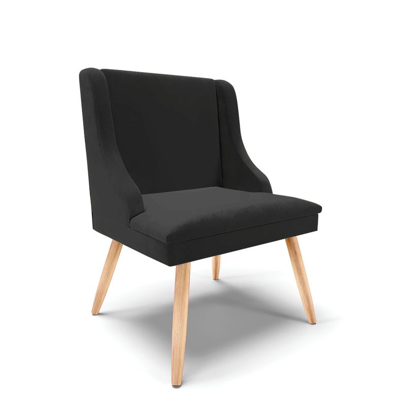 Experimente deixar sua decoração com bom gosto e qualidade com a cadeira de jantar Liz. É perfeita para você não abre mão de qualidade e requinte na hora das refeições e confraternizações com amigos e familiares. Produzida com Pés Palito Natural que suportam até 120 kg, estrutura ecologicamente correta de madeira de eucalipto e pinus, oferece durabilidade e qualidade ao móvel, seu estofamento é com espuma de densidade D-23, revestido em tecido Veludo no tom Preto. Sofisticada e excelente para deixar sua sala de jantar mais aconchegante. Compre sem sair de casa!DimensõesAltura total: 85 cmLargura total: 55 cmProfundidade total: 55 cmAltura do encosto: 40 cmLargura do assento: 45 cmProfundidade do assento: 50 cmAltura do chão ao assento: 45 cmEspessura do assento: 10 cmTamanho dos pés: 35 cmPeso: 9 kgEspecificações do ProdutoEstrutura: Madeira EucaliptoEspuma: D-23Tecido: VeludoTipo de pés: Palito Palito NaturalPeso suportado: Até 120 KgGarantia: 90 dias contra defeito de fabricaçãoMontagem: O produto vai montado, apenas rosquear os pésInstruções de limpeza: Utilizar um pano limpo e levemente úmidoVocê irá receber: 01 volume com 01 produtoObservações Relevantes- Todos os produtos vão embalados com total segurança;- As cores dos produtos podem sofrer alterações dependendo do seu monitor;- Para futuras compras, não garantimos a mesma tonalidade de cor, pois existe variação a cada lote do fabricante do tecido;- As imagens são meramente ilustrativas, não acompanham objetos de decoração e eletros;- Confira as dimensões do produto no momento da compra e certifique-se de que passará normalmente por escadas, elevadores, portas e corredores;- Importante: Por se tratar de estofado as medidas podem ter uma pequena variação em até 3 cm;- Não nos responsabilizamos no ato da entrega por montagens, desmontagens, instalações de produtos;- Não nos responsabilizamos no ato da entrega por subir escadas, elevadores, nem utilização de guinchos ou equipamentos similares para acesso a pisos superiores em apartamentos;- A entrega do produto é realizada em todo território nacional, até onde as rodovias alcançam, entregas fluviais ou aéreas devem ser cotadas a parte;- Observando as orientações acima, evita-se futuros desagrados ou imprevistos com a entrega do produto. Havendo despesas adicionais, serão de responsabilidade do cliente;