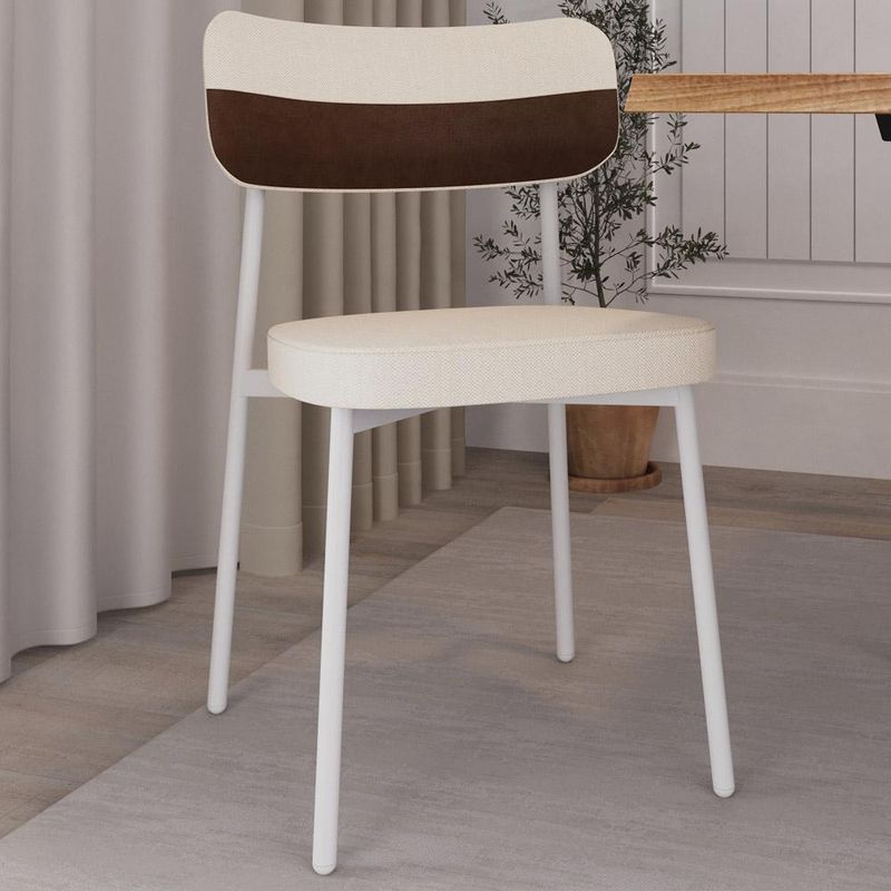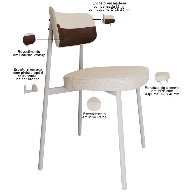 Transforme sua sala de jantar com a nossa Cadeira Astrid! Desfrute de momentos inesquecíveis ao redor da mesa com a cadeira Astrid, projetada para oferecer o máximo de conforto e elegância na sua sala de jantar ou cozinha. Com encosto curvo, ofertando maior conforto no uso, e assento estofado com uma espuma de altíssima qualidade, ela proporciona suporte ideal para longas refeições e conversas agradáveis. Além de combinar durabilidade e estilo, ela é a escolha perfeita para quem busca sofisticação e bem-estar em cada detalhe. Aproveite! Dimensões da Cadeira (L x A x P) 44,2 x 83,8 x 44,7 cm Altura do chão ao assento: 48,2 cm Largura do encosto: 50 cm Altura do encosto: 21 cm Características: Estrutura fixa em aço carbono com pintura epóxi na cor branco. Encosto produzido em madeira compensada com espuma D-28, 25mm. Assento produzido em MDF com espuma D-33, 40mm. Revestimento em Linho Palha com faixa Courino Whisky. Peso suportado de até 120 kg. Produto entregue desmontado, acompanha manual de montagem. - Por se tratar de estofado as medidas podem ter uma pequena variação de até 3 cm. - A tonalidade do produto real poderá ter ligeira variação devido o lote de tecidos. - A limpeza deve ser feita com pano levemente umedecido em água limpa, sem esfregar, não utilizar produtos abrasivos, desengordurantes, álcool ou solvente. Observações importantes: - Produto para uso residencial em ambiente interno, não devendo ficar exposto diretamente ao sol, calor e umidade excessivos. - Pode haver alguma diferença de tonalidade entre a imagem e o produto real, por conta do tratamento de imagens e a calibração de cores do seu monitor. - As imagens são meramente ilustrativas, não acompanham objetos de decoração e eletrônicos. - Ao receber a mercadoria, o cliente deve verificar as condições da embalagem, caso haja alguma avaria não assine o comprovante de recebimento. - Montagem, desmontagem e outras instalações serão de responsabilidade do cliente. Não nos responsabilizamos, no ato da entrega, por subir escadas/elevadores ou pelo transporte por guincho em apartamentos. Eventuais despesas são de responsabilidade do comprador. - Confira as dimensões do produto e certifique-se de que passará normalmente por supostos elevadores, portas, escadas e/ou corredores de sua residência.