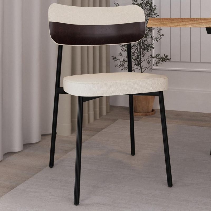 Transforme sua sala de jantar com a nossa Cadeira Astrid! Desfrute de momentos inesquecíveis ao redor da mesa com a cadeira Astrid, projetada para oferecer o máximo de conforto e elegância na sua sala de jantar ou cozinha. Com encosto curvo, ofertando maior conforto no uso, e assento estofado com uma espuma de altíssima qualidade, ela proporciona suporte ideal para longas refeições e conversas agradáveis. Além de combinar durabilidade e estilo, ela é a escolha perfeita para quem busca sofisticação e bem-estar em cada detalhe. Aproveite! Dimensões da Cadeira (L x A x P) 44,2 x 83,8 x 44,7 cm Altura do chão ao assento: 48,2 cm Largura do encosto: 50 cm Altura do encosto: 21 cm Características: Estrutura fixa em aço carbono com pintura epóxi na cor preto. Encosto produzido em madeira compensada com espuma D-28, 25mm. Assento produzido em MDF com espuma D-33, 40mm. Revestimento em Linho Palha com faixa Courino Café. Peso suportado de até 120 kg. Produto entregue desmontado, acompanha manual de montagem. - Por se tratar de estofado as medidas podem ter uma pequena variação de até 3 cm. - A tonalidade do produto real poderá ter ligeira variação devido o lote de tecidos. - A limpeza deve ser feita com pano levemente umedecido em água limpa, sem esfregar, não utilizar produtos abrasivos, desengordurantes, álcool ou solvente. Observações importantes: - Produto para uso residencial em ambiente interno, não devendo ficar exposto diretamente ao sol, calor e umidade excessivos. - Pode haver alguma diferença de tonalidade entre a imagem e o produto real, por conta do tratamento de imagens e a calibração de cores do seu monitor. - As imagens são meramente ilustrativas, não acompanham objetos de decoração e eletrônicos. - Ao receber a mercadoria, o cliente deve verificar as condições da embalagem, caso haja alguma avaria não assine o comprovante de recebimento. - Montagem, desmontagem e outras instalações serão de responsabilidade do cliente. Não nos responsabilizamos, no ato da entrega, por subir escadas/elevadores ou pelo transporte por guincho em apartamentos. Eventuais despesas são de responsabilidade do comprador. - Confira as dimensões do produto e certifique-se de que passará normalmente por supostos elevadores, portas, escadas e/ou corredores de sua residência.