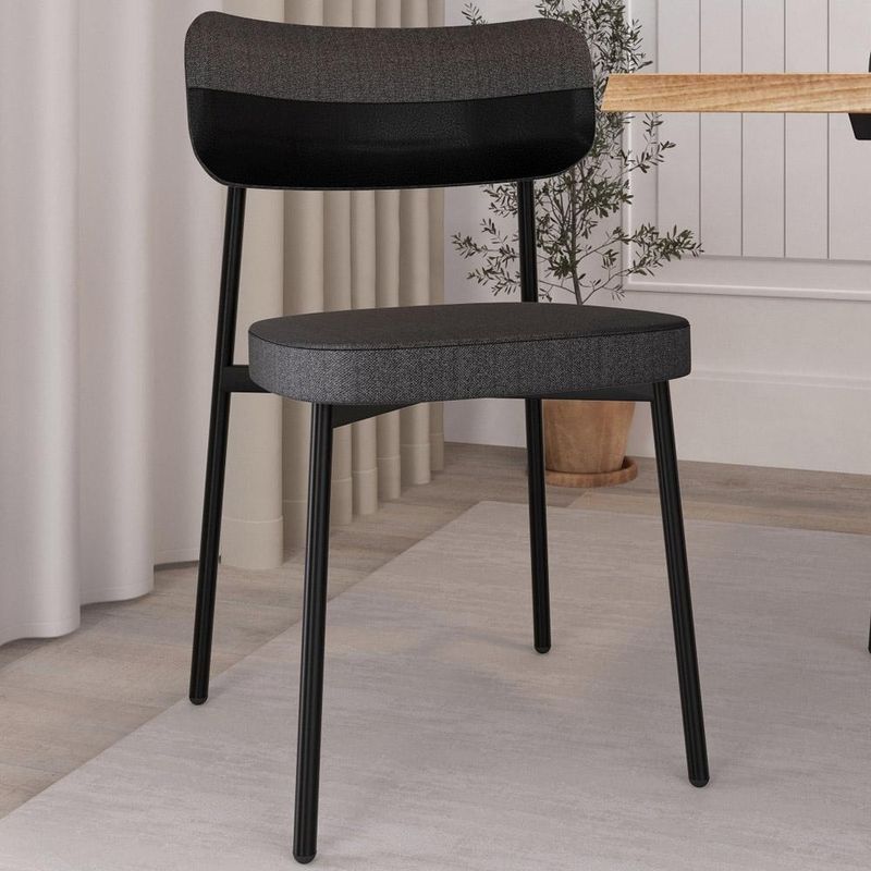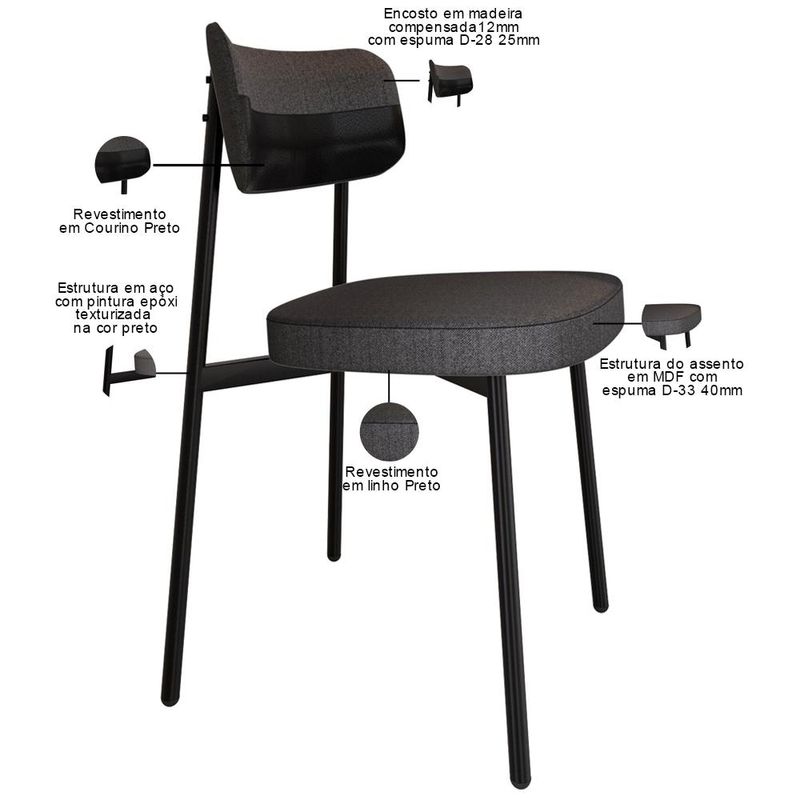 Transforme sua sala de jantar com a nossa Cadeira Astrid! Desfrute de momentos inesquecíveis ao redor da mesa com a cadeira Astrid, projetada para oferecer o máximo de conforto e elegância na sua sala de jantar ou cozinha. Com encosto curvo, ofertando maior conforto no uso, e assento estofado com uma espuma de altíssima qualidade, ela proporciona suporte ideal para longas refeições e conversas agradáveis. Além de combinar durabilidade e estilo, ela é a escolha perfeita para quem busca sofisticação e bem-estar em cada detalhe. Aproveite! Dimensões da Cadeira (L x A x P) 44,2 x 83,8 x 44,7 cm Altura do chão ao assento: 48,2 cm Largura do encosto: 50 cm Altura do encosto: 21 cm Características: Estrutura fixa em aço carbono com pintura epóxi na cor preto. Encosto produzido em madeira compensada com espuma D-28, 25mm. Assento produzido em MDF com espuma D-33, 40mm. Revestimento em Linho Preto com faixa Courino Preto. Peso suportado de até 120 kg. Produto entregue desmontado, acompanha manual de montagem. - Por se tratar de estofado as medidas podem ter uma pequena variação de até 3 cm. - A tonalidade do produto real poderá ter ligeira variação devido o lote de tecidos. - A limpeza deve ser feita com pano levemente umedecido em água limpa, sem esfregar, não utilizar produtos abrasivos, desengordurantes, álcool ou solvente. Observações importantes: - Produto para uso residencial em ambiente interno, não devendo ficar exposto diretamente ao sol, calor e umidade excessivos. - Pode haver alguma diferença de tonalidade entre a imagem e o produto real, por conta do tratamento de imagens e a calibração de cores do seu monitor. - As imagens são meramente ilustrativas, não acompanham objetos de decoração e eletrônicos. - Ao receber a mercadoria, o cliente deve verificar as condições da embalagem, caso haja alguma avaria não assine o comprovante de recebimento. - Montagem, desmontagem e outras instalações serão de responsabilidade do cliente. Não nos responsabilizamos, no ato da entrega, por subir escadas/elevadores ou pelo transporte por guincho em apartamentos. Eventuais despesas são de responsabilidade do comprador. - Confira as dimensões do produto e certifique-se de que passará normalmente por supostos elevadores, portas, escadas e/ou corredores de sua residência.