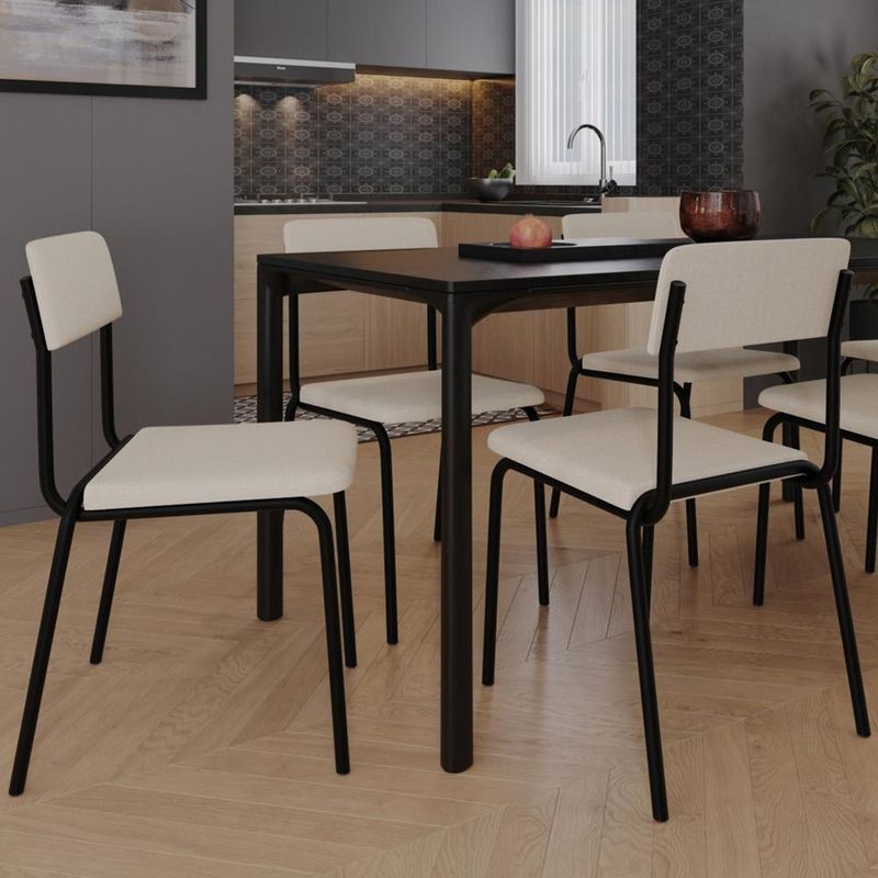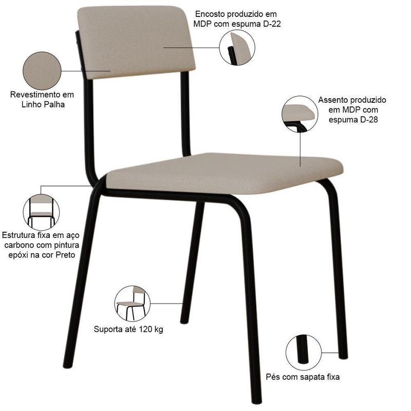 Kit 02 Cadeiras Estofada Para Sala De Jantar Sense Preto C01 Linho Palha - Lyam DecorDesfrute de momentos inesquecíveis com a Cadeira Sense, projetada para oferecer o máximo de conforto e elegância com seu design slim. Com sua estrutura de aço, assento e encosto estofados com materiais de altíssima qualidade, ela proporciona suporte ideal para longas refeições e conversas agradáveis. Além de combinar durabilidade e estilo, ela é a escolha perfeita para quem busca sofisticação e bem-estar em cada detalhe. Transforme sua sala de jantar com a nossa Cadeira Sense. Garanta já a sua!Dimensões da Cadeira (L x A x P) 47,5 x 81 x 50,5 cmAltura do chão ao assento: 47,5 cm Largura do encosto: 41 cm Altura do encosto: 17 cm Profundidade do assento: 40 cmCaracterísticas: Estrutura fixa em aço carbono com pintura epóxi na cor preto. Encosto produzido em MDP com espuma D-22. Assento produzido em MDP com espuma D-28. Revestimento em Linho Palha. Pés com sapatas fixa. Peso suportado de até 120 kg.- Por se tratar de estofado as medidas podem ter uma pequena variação de até 3 cm. - A tonalidade do produto real poderá ter ligeira variação devido o lote de tecidos. - A limpeza deve ser feita com pano levemente umedecido em água limpa, sem esfregar, não utilizar produtos abrasivos, desengordurantes, álcool ou solvente.Observações importantes: - Produto para uso residencial em ambiente interno, não devendo ficar exposto diretamente ao sol, calor e umidade excessivos. - Pode haver alguma diferença de tonalidade entre a imagem e o produto real, por conta do tratamento de imagens e a calibração de cores do seu monitor. - As imagens são meramente ilustrativas, não acompanham objetos de decoração e eletrônicos. - Ao receber a mercadoria, o cliente deve verificar as condições da embalagem, caso haja alguma avaria não assine o comprovante de recebimento. - Montagem, desmontagem e outras instalações serão de responsabilidade do cliente. Não nos responsabilizamos, no ato da entrega, por subir escadas/elevadores ou pelo transporte por guincho em apartamentos. Eventuais despesas são de responsabilidade do comprador. - Confira as dimensões do produto e certifique-se de que passará normalmente por supostos elevadores, portas, escadas e/ou corredores de sua residência. Cor: Palha | ColorSimple: Palha | OriginState: PR | ProductLength: 51 cm | Cor do assento: Palha | Espessura do assento: na | É dobrável: Não | É empilhável: Não | ColorFamily: Palha | Color: Palha | OriginCountry: Brasil | ProductContents: 02 Cadeiras | SizeDescription: Altura: 162 cm x Largura: 48 cm x Profundidade: 51 cm | SupplierSimpleName: Kit 02 Cadeiras Estofada Para Sala de Jantar Sense Preto C01 Linho Palha - Lyam Decor | ProductWidth: 48 cm | ProductInstructions: Produto para uso em ambiente interno, nao devendo ficar exposto ao sol, calor e umidade excessivos. | Altura da cadeira: 81 cm | Desenho do tecido: Liso | Cor da estrutura da cadeira: Preto | Profundidade do assento: 40 cm | Material do estofamento: Aço, MDP e Linho | Largura da cadeira: 47,5 cm | Cor do estofamento: Palha | Material: Estrutura em Aço e MDP, Revestimento em Linho | ColorSupplier: Palha | MaterialFamily: Aço, MDP e Linho | Fabricante: Lyam Decor | Model: Sense | ProductHeight: 162 cm | ProductWarranty: 90 dias após o recebimento do produto | ProductWeight: 11,5 kg | É cadeira de balanço: Não | Firmeza: Firme | Profundidade da cadeira: 51 cm | Largura do assento: NA | Peso máximo suportado: 120 kg | Altura do assento a partir do solo: 47,5 cm | Requer montagem: Não | Tempo de montagem: na