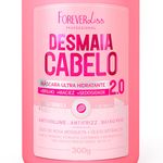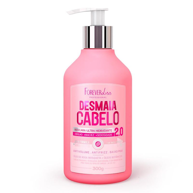 Forever Liss - 02 Máscara Desmaia Cabelo 2.0 300gOferece um tratamento intensivo e inovador para recuperar completamente os fios fragilizados, devolvendo o brilho e a maciez para cabelos fortes e resistentes. oferece como resultado o realinhamento dos fios, promovendo redução do volume excessivo e do frizz. O efeito liso conquistado graças à versão 2.0 dura muito mais tempo, mantendo o brilho e maciez intactos.- Brilho único;- Ação contra frizz e volume;- Efeito liso por muito mais tempo.Sugestão de uso:1 - Após lavar os cabelos, aplicar a Máscara por todo o comprimento dos fios;2 - Massagear os cabelos suavemente;3 - Deixar agir por 5 minutos, enxaguar completamente e finalizar como desejar.Dica: garanta resultados ainda melhores com a termoativação, utilizando escova e prancha para criar um realinhamento temporário dos fios e selar as cutículas contra a umidade e danos externos.O que você está comprando!02 - Máscara Desmaia Cabelo 2.0 Forever Liss - 300g.ANVISA 25351.471999/2022-32.*Não testado em animais;*Imagens meramente ilustrativas.Composição: Aqua (água), Cetearyl Alcohol (álcool Cetoestearílico), Glycerin (Glicerina), Cetrimonium Chloride (Cloreto De Cetrimônio), Behentrimonium Methossulfate (Behentrimonio Metossulfato), Ethanol (Etanol, Amodimethicone (Amodimeticona), Trideceth-12 (Trideceth-12), Polyquaternium-7 (Poliquatérnio-7), Cetyl Alcohol (álcool Cetílico), Rosa Canina Fruit Oil (Oleo Do Fruto De Rosa Canina), Ethyl Linoleate (Linoleato De Etila), Ethyl Oleate (Oleato De Etila), Crambe Abyssinica Seed Oil (óleo Da Semente De Crambe Abyssinica), Helianthus Annuus (Sunflower) Seed Oil (óleo Da Semente De Helianthus Annuus (Girassol)), Persea Gratissima (Avocado) Oil (óleo De Persea Gratissima (Abacate)), Ceteareth-20 (álcool Cetoestearílico Etoxilado 20eo), Parfum (Perfume), Lactic Acid (ácido Lático), Trehalose (Trehalose), Polyglyceryl-10 Laurate (Laurato De Poliglicerila-10) Glycolic Acid (ácido Glicólico), Magnesium Aluminum Silicate (Silicato De Alumínio E Magnésio), Cocos Nucifera (Coconut) Oil (Oleo De Cocos Nucifera (Coco)), Sodium Lignosulfonate (Lignosulfonato De Sódio), Behentrimonium Chloride (Cloreto De Behentrimonio), Disodium Edta (Edetato Dissódico), Bht (Butilhidroxitolueno), Methylchloroisothiazolinone/methylisothiazolinone (Metilcloroisotiazolinona/metilisotiazolinona).