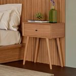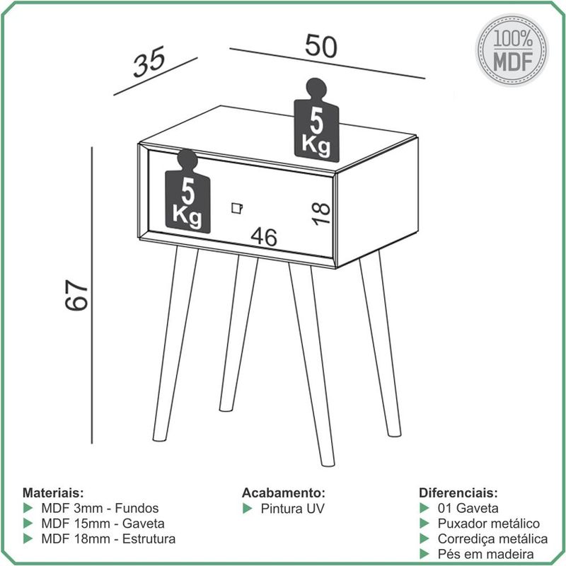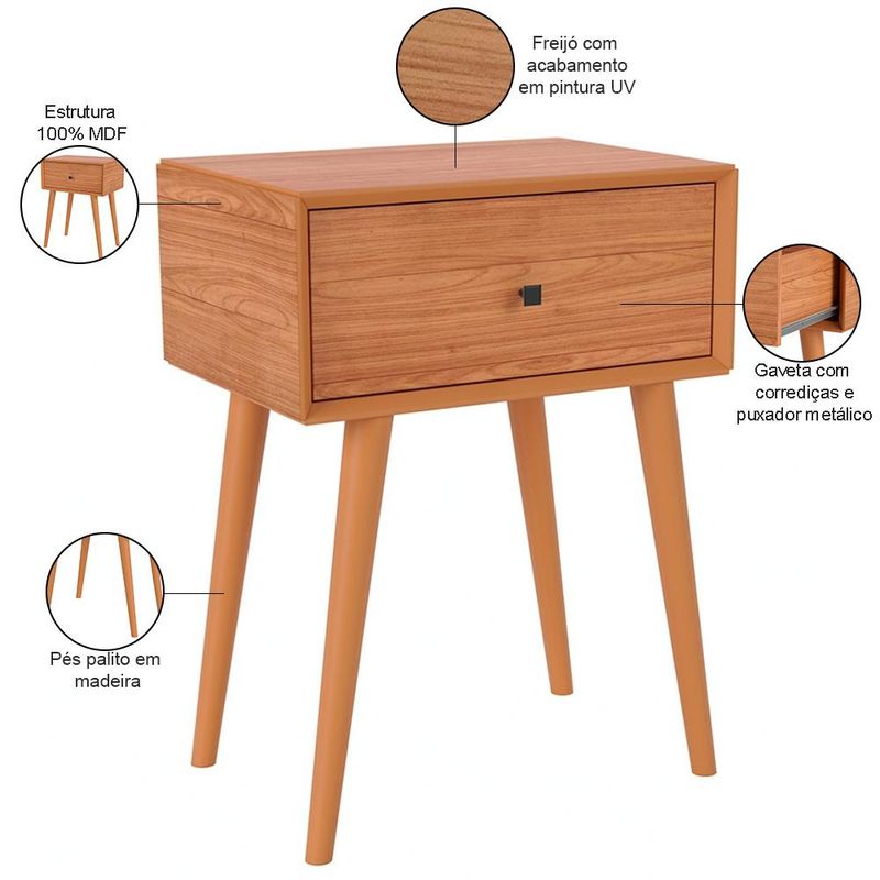 Descubra o Kit 02 Mesas de Cabeceira Kayla, da Lyam Decor, um sonho de design minimalista e funcionalidade. Fabricada 100% em MDF, essa mesa lateral para cama combina resistência e leveza, perfeita para dar um toque moderno ao seu quarto. A gaveta discreta garante a organização dos seus itens essenciais, enquanto os pés palito acrescentam um charme escandinavo, conferindo elegância ao ambiente. Essa mesa de apoio para quarto não é apenas um suporte prático, mas um elemento decorativo que transforma seu espaço em um refúgio acolhedor e estiloso. Uma escolha inteligente para quem valoriza sofisticação e simplicidade em cada detalhe! Adicione ao seu carrinho e surpreenda-se com tamanha funcionalidade e beleza da Mesa de Cabeceira Kayla. Dimensões total do produto (L x A x P) 50 x 67 x 37 cm Medidas Internas Gaveta (L x A): 46 x 48 cm Características: Estrutura em 100% MDF 18mm, gaveta 15mm. Peça na tonalidade Freijó com acabamento em pintura UV. 01 gaveta com corrediças e puxador metálico. Pés palito em madeira. Suporta até 10 kg distribuídos cada, conforme manual. - Produto entregue desmontado, acompanha manual de montagem. - Este produto deve ser limpo com pano macio e seco. Não utilize produtos abrasivos como álcool e detergente, assim como esponjas rígidas ou palha de aço. - Proteja a superfície do móvel de objetos que transmitam calor ou umidade. Observações importantes: - Produto para uso residencial em ambiente interno, não devendo ficar exposto diretamente ao sol, calor e umidade excessivos. - Pode haver alguma diferença de tonalidade entre a imagem e o produto real, por conta do tratamento de imagens e a calibração de cores do seu monitor. - As imagens são meramente ilustrativas, não acompanham objetos de decoração e eletrônicos. - Ao receber a mercadoria, o cliente deve verificar as condições da embalagem, caso haja alguma avaria não assine o comprovante de recebimento. - Montagem, desmontagem e outras instalações serão de responsabilidade do cliente. Não nos responsabilizamos, no ato da entrega, por subir escadas/elevadores ou pelo transporte por guincho em apartamentos. Eventuais despesas são de responsabilidade do comprador. - Confira as dimensões do produto e certifique-se de que passará normalmente por supostos elevadores, portas, escadas e/ou corredores de sua residência.