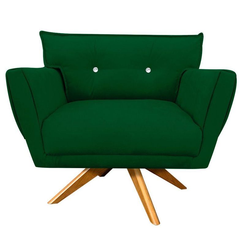Kit 02 Poltronas Giratória Anitta Suede Com Strass Base Madeira Ma30 D'rossi Cor VerdeA Poltrona Anitta é sofisticada e tem muito alto astral. Possui um encosto super fofo que no primeiro momento ao sentar você terá a sensação de estar sendo abraçado! Uma combinação perfeita para os ambientes modernos e também para os espaços neutros e tradicionais deixando-os mais leves e descontraídos. A almofada do encosto é fixa e utilizamos fibra siliconada para dar toda maciez e conforto, no assento utilizamos a espuma D-23. Dimensões Poltrona: Altura total: 80 cm Largura total: 78 cm Profundidade total: 65 cm Altura do encosto: 37 cm Largura do assento: 54 cm Profundidade do assento: 46 cm Altura do chão ao assento: 48 cm Espessura do assento: 18 cm Tamanho dos pés: 30 cm Altura do chão ao braço: 63 cm Altura interna do braço: 18 cm Espessura do braço: 10 cm Peso: 18 kg Especificações do Produto Estrutura: Madeira Eucalipto Espuma: D-23 Tecido: Suede Tipo de pés: Base Giratória em Madeira Peso Suportado: Até 120 kg Garantia: 90 dias contra defeito de fabricação Montagem: O produto vai montado, apenas rosquear os pés Instruções de Limpeza: Utilizar um pano limpo e levemente úmido Você irá receber: 01 volume com 02 poltronas Observações Relevantes - Todos os produtos vão embalados com total segurança; - As cores dos produtos podem sofrer alterações dependendo do seu monitor; - Para futuras compras, não garantimos a mesma tonalidade de cor, pois existe variação a cada lote do fabricante do tecido; - As imagens são meramente ilustrativas, não acompanham objetos de decoração e eletros; - Confira as dimensões do produto no momento da compra e certifique-se de que passará normalmente por escadas, elevadores, portas e corredores; - Importante: Por se tratar de estofado as medidas podem ter uma pequena variação em até 3 cm; - Não nos responsabilizamos no ato da entrega por montagens, desmontagens, instalações de produtos; - Não nos responsabilizamos no ato da entrega por subir escadas, elevadores, nem utilização de guinchos ou equipamentos similares para acesso a pisos superiores em apartamentos; - A entrega do produto é realizada em todo território nacional, até onde as rodovias alcançam, entregas fluviais ou aéreas devem ser cotadas a parte; - Observando as orientações acima, evita-se futuros desagrados ou imprevistos com a entrega do produto. Havendo despesas adicionais, serão de responsabilidade do cliente;Informações Técnicas