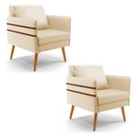 Que tal a Poltrona Mari? Imagine-se utilizando esse produto e usufruindo de todos os benefícios que ela oferece. Usar essa poltrona é bem simples! Pode ser utilizada para evidenciar e enriquecer o seu ambiente, descansar depois de um dia longo de trabalho, ver aquela série favorita ou simplesmente ler seu livro predileto. Sua estrutura é confeccionada em madeira de eucalipto proveniente de reflorestamento, suportando em média até 120 Kg, possuí seus pés palito em madeira, garantindo uma maior resistência e durabilidade ao produto, o estofamento do assento e encosto é composto de espuma D-23, revestido em tecido Corino no tom Bege. Então, se a sua dificuldade é a otimização de espaço, a poltrona além de confortável e sofisticada, traz toda a funcionalidade que você precisa. Apenas algumas unidades estão disponíveis, separe o seu Kit 02 Poltronas Mari antes que acabem! Dimensões da Poltrona: Altura total: 82 cm Largura total: 63 cm Profundidade total: 74 cm Altura do encosto: 51 cm Largura do assento: 54 cm Profundidade do assento: 57 cm Altura do chão ao assento: 47 cm Espessura do assento: 22 cm Altura do chão ao braço: 46 cm Altura interna do braço: 19 cm Tamanho dos pés: 25 cm Espessura do braço: 4 cm Peso: 15 kg Dimensões da Almofada: Altura total: 34 cm Largura total: 51 cm Profundidade total: 20 cm Peso: 0,3 kg Especificações do Produto Estrutura: Madeira Eucalipto Espuma: D-23 Tecido: Corino Tipo de pés: Pés Palito Castanho Peso suportado: Até 120 Kg Garantia: 90 dias contra defeito de fabricação Montagem: O produto vai montado, apenas rosquear os pés Instruções de limpeza: Utilizar um pano limpo e levemente úmido Você irá receber: 02 Volumes com 02 Poltronas Observações Relevantes - Todos os produtos vão embalados com total segurança; - As cores dos produtos podem sofrer alterações dependendo do seu monitor; - Para futuras compras, não garantimos a mesma tonalidade de cor, pois existe variação a cada lote do fabricante do tecido; - As imagens são meramente ilustrativas, não acompanham objetos de decoração e eletros; - Confira as dimensões do produto no momento da compra e certifique-se de que passará normalmente por escadas, elevadores, portas e corredores; - Importante: Por se tratar de estofado as medidas podem ter uma pequena variação em até 3 cm; - Não nos responsabilizamos no ato da entrega por montagens, desmontagens, instalações de produtos; - Não nos responsabilizamos no ato da entrega por subir escadas, elevadores, nem utilização de guinchos ou equipamentos similares para acesso a pisos superiores em apartamentos; - A entrega do produto é realizada em todo território nacional, até onde as rodovias alcançam, entregas fluviais ou aéreas devem ser cotadas a parte; - Observando as orientações acima, evita-se futuros desagrados ou imprevistos com a entrega do produto. Havendo despesas adicionais, serão de responsabilidade do cliente;