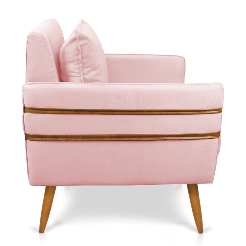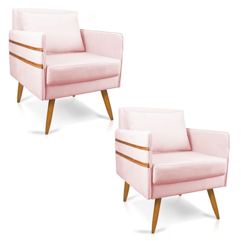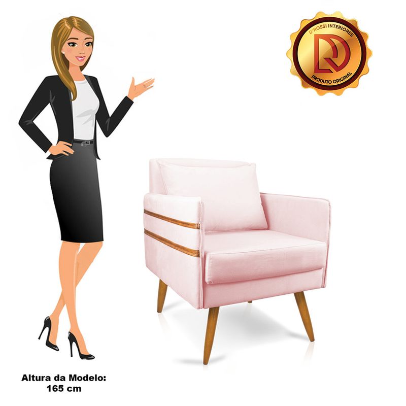 Que tal a Poltrona Mari? Imagine-se utilizando esse produto e usufruindo de todos os benefícios que ela oferece. Usar essa poltrona é bem simples! Pode ser utilizada para evidenciar e enriquecer o seu ambiente, descansar depois de um dia longo de trabalho, ver aquela série favorita ou simplesmente ler seu livro predileto. Sua estrutura é confeccionada em madeira de eucalipto proveniente de reflorestamento, suportando em média até 120 Kg, possuí seus pés em madeira, garantindo uma maior resistência e durabilidade ao produto, o estofamento do assento e encosto é composto de espuma D-23, revestido em tecido Suede no tom Rosa Bebê. Então, se a sua dificuldade é a otimização de espaço, a poltrona além de confortável e sofisticada, traz toda a funcionalidade que você precisa. Apenas algumas unidades estão disponíveis, separe o seu Kit 02 Poltronas Mari antes que acabem!Dimensões da Poltrona: Altura total: 82 cmLargura total: 63 cmProfundidade total: 74 cmAltura do encosto: 51 cmLargura do assento: 54 cmProfundidade do assento: 57 cmAltura do chão ao assento: 47 cmEspessura do assento: 22 cmAltura do chão ao braço: 46 cmAltura interna do braço: 19 cmTamanho dos pés: 25 cmEspessura do braço: 4 cmPeso: 15 kgDimensões da Almofada: Altura total: 34 cmLargura total: 51 cmProfundidade total: 20 cmPeso: 0,3 kgEspecificações do Produto Estrutura: Madeira EucaliptoEspuma: D-23Tecido: SuedeTipo de pés: Pés Palito CastanhoPeso suportado: Até 120 KgGarantia: 90 dias contra defeito de fabricaçãoMontagem: O produto vai montado, apenas rosquear os pésInstruções de limpeza: Utilizar um pano limpo e levemente úmidoVocê irá receber: 02 Volumes com 02 PoltronasObservações Relevantes - Todos os produtos vão embalados com total segurança; - As cores dos produtos podem sofrer alterações dependendo do seu monitor; - Para futuras compras, não garantimos a mesma tonalidade de cor, pois existe variação a cada lote do fabricante do tecido; - As imagens são meramente ilustrativas, não acompanham objetos de decoração e eletros; - Confira as dimensões do produto no momento da compra e certifique-se de que passará normalmente por escadas, elevadores, portas e corredores; - Importante: Por se tratar de estofado as medidas podem ter uma pequena variação em até 3 cm; - Não nos responsabilizamos no ato da entrega por montagens, desmontagens, instalações de produtos; - Não nos responsabilizamos no ato da entrega por subir escadas, elevadores, nem utilização de guinchos ou equipamentos similares para acesso a pisos superiores em apartamentos; - A entrega do produto é realizada em todo território nacional, até onde as rodovias alcançam, entregas fluviais ou aéreas devem ser cotadas a parte; - Observando as orientações acima, evita-se futuros desagrados ou imprevistos com a entrega do produto. Havendo despesas adicionais, serão de responsabilidade do cliente;