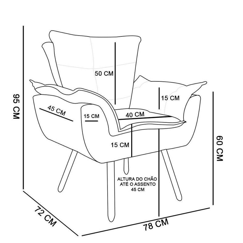 Kit 02 Poltronas Opala Suede Pés Palito Castanho D´rossi -grafiteKit 02 Poltrona Opala Suede Bege Pés Palito D'Rossi Está a procura de conforto para leitura e os de descanso, a Poltrona Opala é a melhor escolha. Com estilo inovador e moderno, a Poltrona Opala é um empoderamento visual. Com elegância ela é feita para preencher o ambiente de aconchego! O seu interior é estruturado em madeira reflorestada de eucalipto e sua base é de MDF reforçada, com pés de madeira castanhos, que dá o apoio necessário para suportar até 120 Kg. O encosto e o assento são fixos e utilizamos a espumaProrelax D-23. DimensõesAltura total: 91 CmLargura total: 80 CmProfundidade total: 67 CmAltura do encosto: 46 CmLargura do assento: 40 CmProfundidade do assento: 46 CmAltura do chão ao assento: 46 CmEspessura do assento: 16 CmTamanho dos pés: 30 CmAltura do chão ao braço: 63 CmAltura interna do braço: 23 CmEspessura do braço: 20 CmPeso:14 KgEspecificações do ProdutoEstrutura:Madeira EucaliptoEspuma:Prorelax D-23Tecido:SuedeTipo de pés:Pés PalitoPeso Suportado:Até 120 KgGarantia:90 Dias contra de fabricaçãoMontagem:O produto vai montado, apenas rosquear os pésInstruções de Limpeza:Utilizar um pano limpo e levemente úmidoVocê irá receber:01 Volume com 02 produtos Observações Relevantes- Todos os produtos vão embalados com total ;- As cores dos produtos podem sofrer alterações dependendo do seu monitor;- Para futuras compras, não garantimos a mesma tonalidade de cor, pois existe variação a cada lote do fabricantMarca :DROSSI -Referência :31084Garantia :90 Dias após o do produto