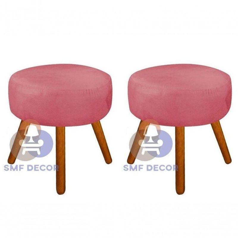 Kit 02 Puff Redondo Pés Palito Cor:rosêKit 02 Puff Redondo Pés Palito Rosê - Puff Redondo Pés PalitoPuff Decorativo Redondo - Conforto e Estilo para o Seu AmbienteO Puff Decorativo Redondo da SMF DECOR é a escolha ideal para quem busca uma peça versátil e estilosa para compor a decoração do seu espaço. Com um design moderno e detalhes cuidadosamente pensados, este puff proporciona conforto e elegância ao mesmo tempo.Características do Produto:· Dimensões do Produto:· Altura: 45 cm· Largura: 40 cm· Profundidade: 40 cm· Material da Estrutura:· Madeira de eucalipto· Chapa: MDP 15mm· Assento:· Espuma Densidade 23· Material dos Pés:· Pés palitos em madeira trabalhada, levemente inclinados· Quantidade de Pés: 3· Revestimento:· Tecido Suede Veludo Light· Peso Suportado:· Até 100 KgGarantia:· 90 dias (defeito de fabricação)Montagem:· Manual de Montagem: Não· Complexidade da Montagem: Baixa· Montagem: O produto pode estar sendo montado pelo compradorRecomendação de Limpeza:· Usar pano levemente umedecido com água, seguido de pano seco· Evitar exposição ao sol para aumentar a durabilidade da cor do tecido· Não usar escova e produtos abrasivosObservações Importantes:· Não efetuamos troca de cor· Imagens ambientadas são meramente ilustrativas e podem conter itens não inclusos no produto· Objetos decorativos nas fotos não acompanham o produto· As cores do produto podem variar conforme monitor, iluminação ou percepção visual· Móveis são entregues desmontados· Montagem, desmontagens e instalações devem ser feitas por um montador profissional· Confira as dimensões antes da compra para garantir que o produto se encaixe nos espaços desejados· Ao receber o produto, verifique a embalagem quanto a danos e, se houver, não assine o comprovante de recebimento até conferir· Produto projetado para uso residencial em ambiente interno, evitando exposição direta ao sol, calor excessivo e umidade.Características Gerais do Produto:- Conteúdo da Embalagem: 02 Puff 02 Kit Pés- Material da Estrutura: - Madeira de Eucalipto Reflorestada; - Pés quadrado; - Espuma D 18; - Fibras siliconada; - Percinta elástica; - Grampo em aço galvanizado; - Tecido Sued Veludo light; - TNT;- Montagem: O produto é projetado para uma montagem fácil e que pode ser realizado pelo próprio comprador. Posicione corretamente os pés antes de rosqueá-los nas chapinhas fixadas na poltrona. Ao rosquear os pés, certifique-se de apertá-los firmemente, mas sem força excessiva para evitar danos.- Pés: 3 Pés Fixo Redondo de Madeira de Eucalipto 30 cm- Peso Suportado: 110kg- Quantidade de Assento: 1 Lugar- Quantidade de Volume: 01- Revestimento: Suede Veludo- Tipo do Assento: Fixa com Espuma D28- Altura: 45 cm- Largura: 40 cm- Peso: 4 kg- Profundidade: 40 cmAcompanha o produto:- 2 Puff Redondo 2 Kit PésGarantia:- De Fábrica