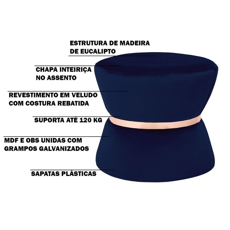 Descrição do Produto: Kit 02 Puffs Decorativo Sala de Estar 45cm Dhaka Veludo Azul Marinho - Gran Belo projetado com Perfeição a cada detalhe que se vê, oferecendo estrutura de Alta Qualidade e um Design diferenciado que irá se destacar no seu ambiente trazendo algo Único para você. Sinta a emoção de deixar o seu precioso espaço Lindo e bem decorado, leve e garanta já o seu! Dimensões do Puff: Largura: 45cm; Altura: 43cm; Profundidade: 45cm; Altura do Assento ao Chão: 43cm; Largura do Assento: 50cm; Diâmetro: 45cm; Peso: 12kg; Características do Produto: Material da Estrutura: Madeira reflorestada de eucalipto, partes em MDF e OSB; Assento: Fixo em espuma D-28; Material dos Pés: Sapatas Plásticas; Quantidade de Pés: 04 Pés; Tipo de Pés: Fixo; Revestimento: Veludo 100% Importado; Peso Suportado: 120Kg; Conteúdo da Embalagem: 2 Puffs; Necessita de Montagem: Não; Instruções/Cuidado: Indicado para uso residencial, sua limpeza deve ser feita com pano úmido com água limpa, sem esfregar. Pode passar álcool líquido de uso doméstico na limpeza. Nunca sentar nos braços ou encosto do produto. Observações importantes: - As imagens são meramente ilustrativas e não acompanham objetos de decoração e eletros. - Pode haver alguma diferença de tonalidade entre a imagem e o produto, por conta do tratamento de imagens e a calibração de cores da sua tela. - Todos os nossos produtos são enviados devidamente embalados e com total segurança. - Ao receber o produto o cliente deve verificar as condições da embalagem, havendo alguma avaria não assine o comprovante de recebimento, entre em contato com a loja para orientações. - A nossa loja se responsabilizará pela entrega dos produtos adquiridos até a porta de entrada ou portaria do endereço indicado. - Não nos responsabilizamos, no ato da entrega, por montagens, desmontagens e instalações de produtos, bem como, por subir ou descer escadas/elevadores ou pela utilização de guinchos ou equipamentos similares para acesso a pisos superiores em apartamentos, casas ou escritórios. Estas despesas adicionais serão de responsabilidade do cliente. - Confira as dimensões do produto no momento da compra e certifique-se de que passará normalmente por elevadores, portas, escadas e/ou corredores, evitando assim futuros desagrados ou imprevistos com a entrega do produto.