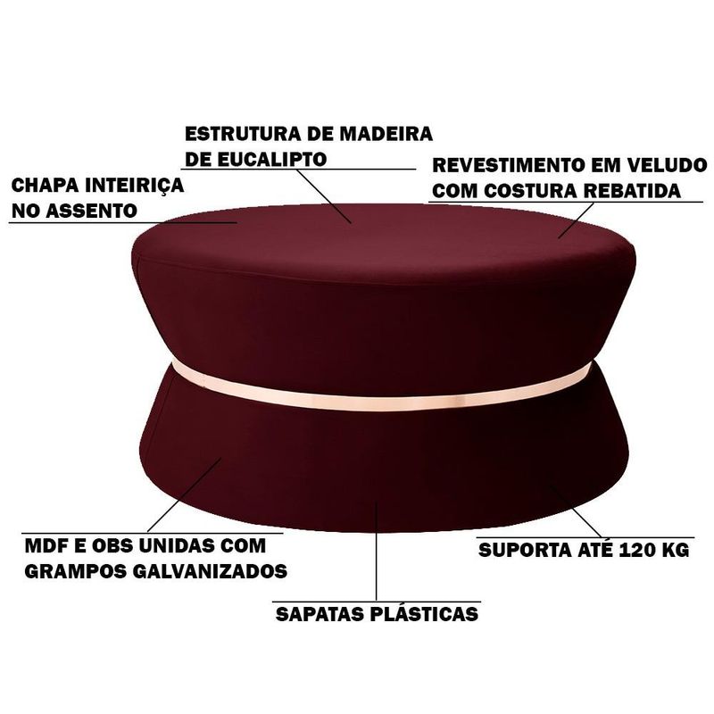 Descrição do Produto: Kit 02 Puffs Decorativo Sala de Estar 95cm Dhaka Veludo Vinho - Gran Belo projetado com Perfeição a cada detalhe que se vê, oferecendo estrutura de Alta Qualidade e um Design diferenciado que irá se destacar no seu ambiente trazendo algo Único para você. Sinta a emoção de deixar o seu precioso espaço Lindo e bem decorado, leve e garanta já o seu! Dimensões do Puff: Largura: 95cm; Altura: 43cm; Profundidade: 95cm; Altura do Assento ao Chão: 43cm; Largura do Assento: 95cm; Diâmetro: 95cm; Peso: 30kg; Características do Produto: Material da Estrutura: Madeira reflorestada de eucalipto, partes em MDF e OSB; Assento: Fixo em espuma D-28; Material dos Pés: Sapatas Plásticas; Quantidade de Pés: 04 Pés; Tipo de Pés: Fixo; Revestimento: Veludo 100% Importado; Peso Suportado: 120Kg; Conteúdo da Embalagem: 2 Puffs; Necessita de Montagem: Não; Instruções/Cuidado: Indicado para uso residencial, sua limpeza deve ser feita com pano úmido com água limpa, sem esfregar. Pode passar álcool líquido de uso doméstico na limpeza. Nunca sentar nos braços ou encosto do produto. Observações importantes: - As imagens são meramente ilustrativas e não acompanham objetos de decoração e eletros. - Pode haver alguma diferença de tonalidade entre a imagem e o produto, por conta do tratamento de imagens e a calibração de cores da sua tela. - Todos os nossos produtos são enviados devidamente embalados e com total segurança. - Ao receber o produto o cliente deve verificar as condições da embalagem, havendo alguma avaria não assine o comprovante de recebimento, entre em contato com a loja para orientações. - A nossa loja se responsabilizará pela entrega dos produtos adquiridos até a porta de entrada ou portaria do endereço indicado. - Não nos responsabilizamos, no ato da entrega, por montagens, desmontagens e instalações de produtos, bem como, por subir ou descer escadas/elevadores ou pela utilização de guinchos ou equipamentos similares para acesso a pisos superiores em apartamentos, casas ou escritórios. Estas despesas adicionais serão de responsabilidade do cliente. - Confira as dimensões do produto no momento da compra e certifique-se de que passará normalmente por elevadores, portas, escadas e/ou corredores, evitando assim futuros desagrados ou imprevistos com a entrega do produto.