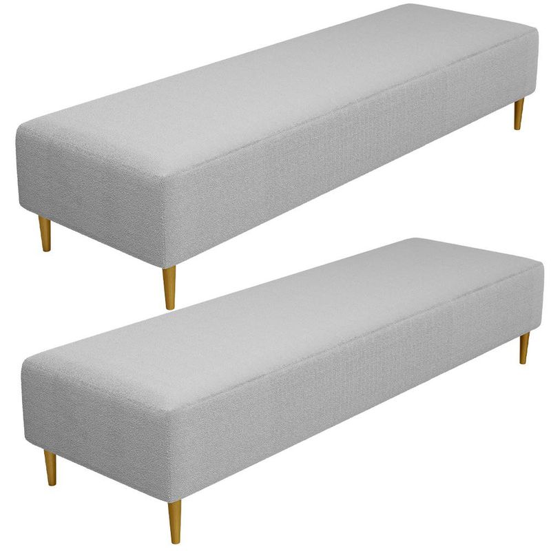 Pensando na praticidade do dia-dia, o Puff Decorativo Bali W01 Pés Palito 190x60cm da Lyam Decor é perfeito para a sua decoração!! É extremamente confortável, ideal para quem procura por funcionalidade e beleza embutidos num único produto. Estruturado com espuma macia e de alta densidade e revestimento de excelente qualidade, além de seus belos pés palito que arrematam muito bem toda a composição deixando-o ainda mais elegante. Possuindo diferentes funções, pode ser posto em salas de estar, garantindo assentos extras, no quarto, como um apoio ou até mesmo recamier aos pés da cama, em closets, integrando ambientes, dentre outras opções. Com certeza vai harmonizar e embelezar ainda mais a decoração do seu lar. Garanta já o seu!!! Dimensões do produto (L x A x P) 190 x 45 x 60 cm Características: Estrutura em pinus e eucalipto de reflorestamento, com imunização contra mofo, cupim e micro-organismos. Revestimento em Bouclê na cor Cinza. Espuma de poliuretano D-26. Pés Palito com montagem prática, necessita apenas rosquear na base. Peso suportado: Até 120 kg. Sustentação do assento com percíntas elásticas de 50mm. Altura dos pés: 15 cm. - Por se tratar de estofado as medidas podem ter uma pequena variação de até 3 cm. - A tonalidade do produto real poderá ter ligeira variação devido o lote de tecidos. Observações importantes: - Produto para uso residencial em ambiente interno, não devendo ficar exposto diretamente ao sol, calor e umidade excessivos. - Pode haver alguma diferença de tonalidade entre a imagem e o produto real, por conta do tratamento de imagens e a calibração de cores do seu monitor. - As imagens são meramente ilustrativas, não acompanham objetos de decoração e eletrônicos. - Ao receber a mercadoria, o cliente deve verificar as condições da embalagem, caso haja alguma avaria não assine o comprovante de recebimento. - Montagem, desmontagem e outras instalações serão de responsabilidade do cliente. Não nos responsabilizamos, no ato da entrega, por subir escadas/elevadores ou pelo transporte por guincho em apartamentos. Eventuais despesas são de responsabilidade do comprador. - Confira as dimensões do produto e certifique-se de que passará normalmente por supostos elevadores, portas, escadas e/ou corredores de sua residência.
