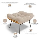 Descrição do produto: É fato que o tempo passa, mas os clássicos sempre permanecem. Desenvolvida em 1956 pelo renomeado designer austríaco Martin Eisler, o Puff Costela é um dos considerados clássicos do mobiliário contemporâneo reconhecido internacionalmente. Ele é a junção de tudo que uma decoração de bom gosto pede, almofadas capitonê macias e confortáveis no assento, base com traçado de linhas elegantes e curvilíneas com o shape formato costela. Seus pés delicados valorizam seu revestimento de fibra siliconada, ideal para decorações residenciais, sofisticadas ou clássicas. Sua robustez além de marcar presença no ambiente, oferece conforto inigualável. Dimensões do Puff (L x A x P) 68 x 48 x 58 cm Características: Estrutura em madeira compensado anatômico com pintura em fórmica na cor Imbuia. Estrutura da base em Aço Carbono com pintura Epóxi na cor Preto. Tubo de ¾”com espessura de 1,5mm. Assento e encosto com enchimento 100% em fibra de silicone e acabamento em capitonê. Revestimento em Suede na cor Bege de alta qualidade. Peso Suportado: Até 120 kg. - Por se tratar de estofado as medidas podem ter uma pequena variação de até 3 cm. - A tonalidade do produto real poderá ter ligeira variação devido o lote de tecidos. Observações importantes: - Produto para uso residencial em ambiente interno, não devendo ficar exposto diretamente ao sol, calor e umidade excessivos. - Pode haver alguma diferença de tonalidade entre a imagem e o produto real, por conta do tratamento de imagens e a calibração de cores do seu monitor. - As imagens são meramente ilustrativas, não acompanham objetos de decoração e eletrônicos. - Ao receber a mercadoria, o cliente deve verificar as condições da embalagem, caso haja alguma avaria não assine o comprovante de recebimento. - Montagem, desmontagem e outras instalações serão de responsabilidade do cliente. Não nos responsabilizamos, no ato da entrega, por subir escadas/elevadores ou pelo transporte por guincho em apartamentos. Eventuais despesas são de responsabilidade do comprador. - Confira as dimensões do produto e certifique-se de que passará normalmente por supostos elevadores, portas, escadas e/ou corredores de sua residência.