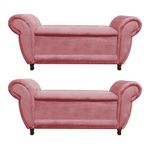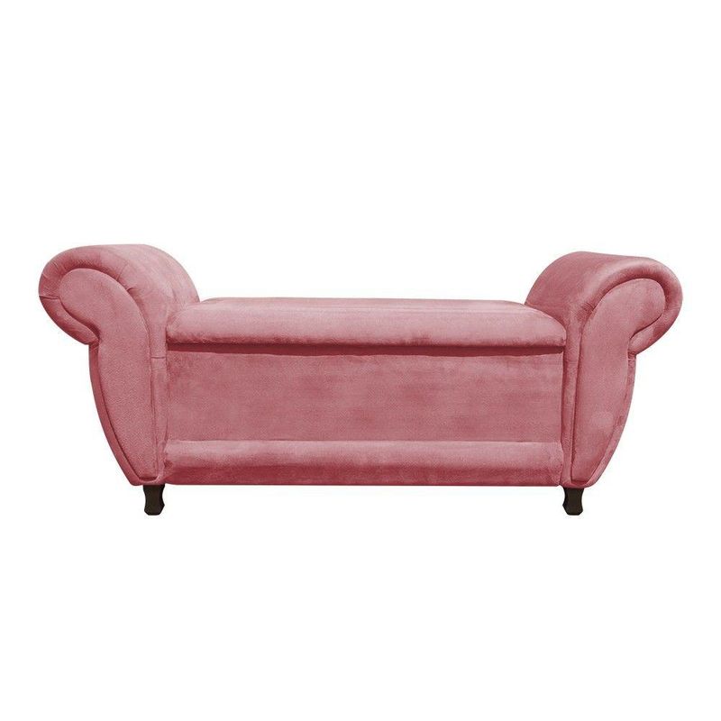 Kit 02 Recamier Com Baú Itália Namoradeira Calçadeira Suede - D'rossi Cor RoseProduzida em estrutura em madeira de eucalipto, tapeçada com espuma de poliuretano, tecido suede com baú, foi feito para guardar o que você quiser, com a vantagem de que ele pode ser usado como sofá e namoradeira aos pés da cama e ainda tem mais: por ser todo estofado, o Recamier Itália tem o plus de ser um confortável recamier. aproveite e deixe o seu quarto/sala mais elegante e sofisticado com esse Recamier. Dimensões Altura: 71 cm Largura: 157 cm Profundidade: 55 cm Altura assento: 45 cm Peso: 22 KG Especificações do Produto Estrutura: Madeira Eucalipto Espuma: D-23 Tecido: Suede (100% Poliéster) Tipo de pés: Pés em madeira Peso Suportado: Até 220 Kg Garantia: 90 dias contra defeito de fabricação Montagem: O produto vai montado, apenas rosquear os pés Instruções de Limpeza: Utilizar um pano limpo e levemente úmido Observações Relevantes - Todos os produtos vão embalados com total segurança; - As cores dos produtos podem sofrer alterações dependendo do seu monitor; - Para futuras compras, não garantimos a mesma tonalidade de cor, pois existe variação a cada lote do fabricante do tecido; - As imagens são meramente ilustrativas, não acompanham objetos de decoração e eletros; - Confira as dimensões do produto no momento da compra e certifique-se de que passará normalmente por escadas, elevadores, portas e corredores; - Importante: Por se tratar de estofado as medidas podem ter uma pequena variação em até 3 cm; - Não nos responsabilizamos no ato da entrega por montagens, desmontagens, instalações de produtos; - Não nos responsabilizamos no ato da entrega por subir escadas, elevadores, nem utilização de guinchos ou equipamentos similares para acesso a pisos superiores em apartamentos; - A entrega do produto é realizada em todo território nacional, até onde as rodovias alcançam, entregas fluviais ou aéreas devem ser cotadas a parte; - Observando as orientações acima, evita-se futuros desagrados ou imprevistos com a entrega do produto. Havendo despesas adicionais, serão de responsabilidade do cliente;Informações Técnicas