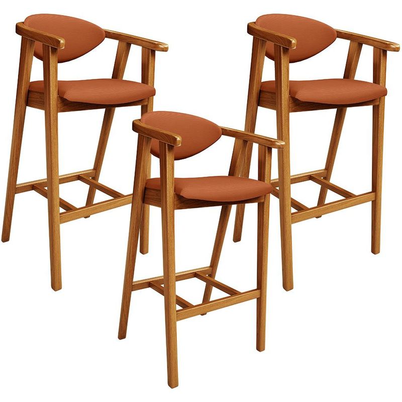 A melhor escolha para os momentos de confraternização no aconchego da sua casa, acaba de chegar! O Kit 03 Banquetas Altas Cecília vem com a personalidade e elegância que sua decoração merece! É ideal desde refeições rápidas, até um Happy Hour com os amigos, família. Seu design único valoriza o ambiente, sem deixar pra trás a beleza e qualidade! Para deixar a sua área gourmet mais aconchegante, ela possui assento e encosto estofados, confeccionados com materiais de excelente qualidade, e extremamente resistentes. Possui altura ideal, garantindo o encaixe perfeito no ambiente, otimizando seu espaço e promovendo máximo conforto. Pode ser usada em bancada, cozinha americana, home bar, ou área gourmet! As possibilidades são infinitas e as combinações ficarão extremamente elegantes. Adquira já a sua! Dimensões do produto (L x A x P) 51 x 102 x 47 cm Medidas Internas: Altura do encosto: 22 cm Altura total do encosto: 33 cm Largura do encosto: 41 cm Altura do assento: 4,5 cm Altura do chão ao braço: 88 cm Profundidade do assento: 46,5 cm Largura do assento: 44 cm Altura interna do braço: 18 cm Altura do chão ao assento: 70 cm Altura do chão ao apoio de pés: 30 cm Altura do apoio de pés: 4,5 cm Largura interna do apoio de pés: 27 cm Características: Estrutura em madeira de reflorestamento de eucalipto vermelho tratado. Revestimento em Tecido na cor Terracota. Assento com espuma D-28. Encosto com espuma D-28. Peso suportado: Até 140 kg. Estrutura de Madeira na cor Nozes. Produto entregue montado. - Por se tratar de estofado as medidas podem ter uma pequena variação de até 3 cm. - A tonalidade do produto real poderá ter ligeira variação devido o lote de tecidos. - A limpeza deve ser feita com pano levemente umedecido em água limpa, sem esfregar, não utilizar produtos abrasivos, desengordurantes, álcool ou solvente. - Nunca sentar nos braços ou encosto do produto. Observações importantes: - Produto para uso residencial em ambiente interno, não devendo ficar exposto diretamente ao sol, calor e umidade excessivos. - Pode haver alguma diferença de tonalidade entre a imagem e o produto real, por conta do tratamento de imagens e a calibração de cores do seu monitor. - As imagens são meramente ilustrativas, não acompanham objetos de decoração e eletrônicos. - Ao receber a mercadoria, o cliente deve verificar as condições da embalagem, caso haja alguma avaria não assine o comprovante de recebimento. - Montagem, desmontagem e outras instalações serão de responsabilidade do cliente. Não nos responsabilizamos, no ato da entrega, por subir escadas/elevadores ou pelo transporte por guincho em apartamentos. Eventuais despesas são de responsabilidade do comprador. - Confira as dimensões do produto e certifique-se de que passará normalmente por supostos elevadores, portas, escadas e/ou corredores de sua residência.