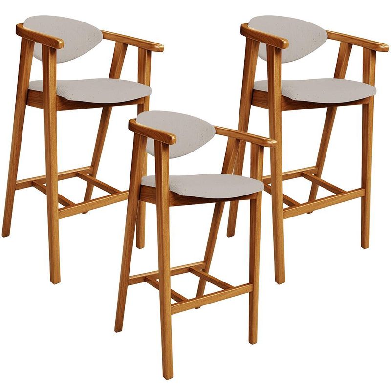 A melhor escolha para os momentos de confraternização no aconchego da sua casa, acaba de chegar! O Kit 03 Banquetas Alta Cecília vem com a personalidade e elegância que sua decoração merece! É ideal desde refeições rápidas, até um Happy Hour com os amigos, família. Seu design único valoriza o ambiente, sem deixar pra trás a beleza e qualidade! Para deixar a sua área gourmet mais aconchegante, ela possui assento e encosto estofados, confeccionados com materiais de excelente qualidade, e extremamente resistentes. Possui altura ideal, garantindo o encaixe perfeito no ambiente, otimizando seu espaço e promovendo máximo conforto. Pode ser usada em bancada, cozinha americana, home bar, ou área gourmet! As possibilidades são infinitas e as combinações ficarão extremamente elegantes. Adquira já a sua! Dimensões do produto (L x A x P) 51 x 102 x 47 cm Medidas Internas: Altura do encosto: 22 cm Altura total do encosto: 33 cm Largura do encosto: 41 cm Altura do assento: 4,5 cm Altura do chão ao braço: 88 cm Profundidade do assento: 46,5 cm Largura do assento: 44 cm Altura interna do braço: 18 cm Altura do chão ao assento: 70 cm Altura do chão ao apoio de pés: 30 cm Altura do apoio de pés: 4,5 cm Largura interna do apoio de pés: 27 cm Características: Estrutura em madeira de reflorestamento de eucalipto vermelho tratado. Revestimento em Linho na cor Bege. Assento com espuma D-28. Encosto com espuma D-28. Peso suportado: Até 140 kg. Estrutura de Madeira na cor Nozes. Produto entregue montado. - Por se tratar de estofado as medidas podem ter uma pequena variação de até 3 cm. - A tonalidade do produto real poderá ter ligeira variação devido o lote de tecidos. - A limpeza deve ser feita com pano levemente umedecido em água limpa, sem esfregar, não utilizar produtos abrasivos, desengordurantes, álcool ou solvente. - Nunca sentar nos braços ou encosto do produto. Observações importantes: - Produto para uso residencial em ambiente interno, não devendo ficar exposto diretamente ao sol, calor e umidade excessivos. - Pode haver alguma diferença de tonalidade entre a imagem e o produto real, por conta do tratamento de imagens e a calibração de cores do seu monitor. - As imagens são meramente ilustrativas, não acompanham objetos de decoração e eletrônicos. - Ao receber a mercadoria, o cliente deve verificar as condições da embalagem, caso haja alguma avaria não assine o comprovante de recebimento. - Montagem, desmontagem e outras instalações serão de responsabilidade do cliente. Não nos responsabilizamos, no ato da entrega, por subir escadas/elevadores ou pelo transporte por guincho em apartamentos. Eventuais despesas são de responsabilidade do comprador. - Confira as dimensões do produto e certifique-se de que passará normalmente por supostos elevadores, portas, escadas e/ou corredores de sua residência.