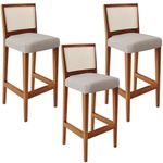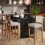 Um clássico que nunca sai de moda! O Kit 03 Banqueta Alta Para Cozinha Sala de Jantar Fixa Telado Branco Zion L02 Linho Bege - Lyam Decor, possui um estilo rustico que faltava para deixar sua casa ainda mais clássica. Seu encosto com o detalhe de tela sintética na cor branca trazem ainda mais estilo e destaque para sua decoração, junto com assento estofado que proporciona horas de conforto. A estrutura e o apoio para os pés, são responsáveis por garantir maior segurança à mesma. Pode ser acomodada em cozinha americana, ambientes integrados, espaços gourmets, bancadas ou em seu home bar, independente do lugar, ela desperta logo de cara o bom gosto e elegância, deixando tudo mais despojado, perfeita para criar um ambiente harmonioso e agradável para receber a família e amigos, sempre com muita receptividade! Características: Estrutura em madeira de reflorestamento de eucalipto vermelho tratado. Revestimento em Linho Bege de alta qualidade. Assento com espuma D-23. Encosto de madeira com tela sintética. Peso suportado: Até 130 kg. Apoio para os pés. Dimensões do produto (L x A x P) 41,5 x 103 x 50 cm Altura do chão ao assento: 75 cm Altura do encosto: 31 cm Largura do encosto: 41,5 cm Profundidade do encosto: 3,5 cm Altura do assento: 10,5 cm Largura do assento: 42,5 cm Profundidade do assento: 38,5 cm Altura do apoio para os pés: 5 cm - Por se tratar de estofado as medidas podem ter uma pequena variação de até 3 cm. - A tonalidade do produto real poderá ter ligeira variação devido o lote de tecidos. Observações importantes: - Produto para uso residencial em ambiente interno, não devendo ficar exposto diretamente ao sol, calor e umidade excessivos. - Pode haver alguma diferença de tonalidade entre a imagem e o produto real, por conta do tratamento de imagens e a calibração de cores do seu monitor. - As imagens são meramente ilustrativas, não acompanham objetos de decoração e eletrônicos. - Ao receber a mercadoria, o cliente deve verificar as condições da embalagem, caso haja alguma avaria não assine o comprovante de recebimento. - Montagem, desmontagem e outras instalações serão de responsabilidade do cliente. Não nos responsabilizamos, no ato da entrega, por subir escadas/elevadores ou pelo transporte por guincho em apartamentos. Eventuais despesas são de responsabilidade do comprador. - Confira as dimensões do produto e certifique-se de que passará normalmente por supostos elevadores, portas, escadas e/ou corredores de sua residência.