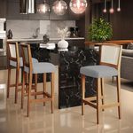 Um clássico que nunca sai de moda! O Kit 03 Banquetas Alta Para Cozinha Sala de Jantar Fixa Telado Branco Zion L02 Suede Cinza - Lyam Decor, possui um estilo rustico que faltava para deixar sua casa ainda mais clássica. Seu encosto com o detalhe de tela sintética na cor branca trazem ainda mais estilo e destaque para sua decoração, junto com assento estofado que proporciona horas de conforto. A estrutura e o apoio para os pés, são responsáveis por garantir maior segurança à mesma. Pode ser acomodada em cozinha americana, ambientes integrados, espaços gourmets, bancadas ou em seu home bar, independente do lugar, ela desperta logo de cara o bom gosto e elegância, deixando tudo mais despojado, perfeita para criar um ambiente harmonioso e agradável para receber a família e amigos, sempre com muita receptividade! Características: Estrutura em madeira de reflorestamento de eucalipto vermelho tratado. Revestimento em Suede Cinza de alta qualidade. Assento com espuma D-23. Encosto de madeira com tela sintética. Peso suportado: Até 130 kg. Apoio para os pés. Dimensões do produto (L x A x P) 41,5 x 103 x 50 cm Altura do chão ao assento: 75 cm Altura do encosto: 31 cm Largura do encosto: 41,5 cm Profundidade do encosto: 3,5 cm Altura do assento: 10,5 cm Largura do assento: 42,5 cm Profundidade do assento: 38,5 cm Altura do apoio para os pés: 5 cm - Por se tratar de estofado as medidas podem ter uma pequena variação de até 3 cm. - A tonalidade do produto real poderá ter ligeira variação devido o lote de tecidos. Observações importantes: - Produto para uso residencial em ambiente interno, não devendo ficar exposto diretamente ao sol, calor e umidade excessivos. - Pode haver alguma diferença de tonalidade entre a imagem e o produto real, por conta do tratamento de imagens e a calibração de cores do seu monitor. - As imagens são meramente ilustrativas, não acompanham objetos de decoração e eletrônicos. - Ao receber a mercadoria, o cliente deve verificar as condições da embalagem, caso haja alguma avaria não assine o comprovante de recebimento. - Montagem, desmontagem e outras instalações serão de responsabilidade do cliente. Não nos responsabilizamos, no ato da entrega, por subir escadas/elevadores ou pelo transporte por guincho em apartamentos. Eventuais despesas são de responsabilidade do comprador. - Confira as dimensões do produto e certifique-se de que passará normalmente por supostos elevadores, portas, escadas e/ou corredores de sua residência.