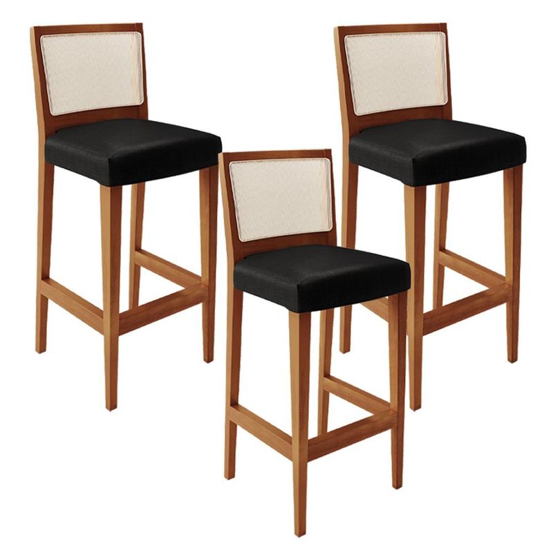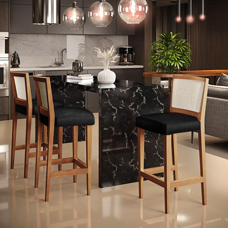 Um clássico que nunca sai de moda! O Kit 03 Banquetas Alta Para Cozinha Sala de Jantar Fixa Telado Branco Zion L02 Facto Dunas Metalizado Preto - Lyam Decor, possui um estilo rustico que faltava para deixar sua casa ainda mais clássica. Seu encosto com o detalhe de tela sintética na cor branca trazem ainda mais estilo e destaque para sua decoração, junto com assento estofado que proporciona horas de conforto. A estrutura e o apoio para os pés, são responsáveis por garantir maior segurança à mesma. Pode ser acomodada em cozinha americana, ambientes integrados, espaços gourmets, bancadas ou em seu home bar, independente do lugar, ela desperta logo de cara o bom gosto e elegância, deixando tudo mais despojado, perfeita para criar um ambiente harmonioso e agradável para receber a família e amigos, sempre com muita receptividade! Características: Estrutura em madeira de reflorestamento de eucalipto vermelho tratado. Revestimento em Facto Dunas Metalizado Preto de alta qualidade. Assento com espuma D-23. Encosto de madeira com tela sintética. Peso suportado: Até 130 kg. Apoio para os pés. Dimensões do produto (L x A x P) 41,5 x 103 x 50 cm Altura do chão ao assento: 75 cm Altura do encosto: 31 cm Largura do encosto: 41,5 cm Profundidade do encosto: 3,5 cm Altura do assento: 10,5 cm Largura do assento: 42,5 cm Profundidade do assento: 38,5 cm Altura do apoio para os pés: 5 cm - Por se tratar de estofado as medidas podem ter uma pequena variação de até 3 cm. - A tonalidade do produto real poderá ter ligeira variação devido o lote de tecidos. Observações importantes: - Produto para uso residencial em ambiente interno, não devendo ficar exposto diretamente ao sol, calor e umidade excessivos. - Pode haver alguma diferença de tonalidade entre a imagem e o produto real, por conta do tratamento de imagens e a calibração de cores do seu monitor. - As imagens são meramente ilustrativas, não acompanham objetos de decoração e eletrônicos. - Ao receber a mercadoria, o cliente deve verificar as condições da embalagem, caso haja alguma avaria não assine o comprovante de recebimento. - Montagem, desmontagem e outras instalações serão de responsabilidade do cliente. Não nos responsabilizamos, no ato da entrega, por subir escadas/elevadores ou pelo transporte por guincho em apartamentos. Eventuais despesas são de responsabilidade do comprador. - Confira as dimensões do produto e certifique-se de que passará normalmente por supostos elevadores, portas, escadas e/ou corredores de sua residência.