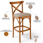 As banquetas têm ocupado um papel de destaque na decoração qualquer ambiente, pensando nisso a Banqueta Ávila chega trazendo um design moderno, confortável e prático. Seu assento estofado traz charme e entrega o conforto ideal a você e sua família. Quando o assunto é versatilidade, ela se propõe a agradar todos os estilos e se encaixar em bares, áreas gourmet, bancadas, cozinhas, salas de jantar e estar e até restaurantes. Sua estrutura em madeira maciça, garante segurança e ainda adiciona toques de elegância e harmonia ao seu espaço. Garanta estilo ao seu ambiente e adquira já a sua!! Dimensões do produto (L x A x P) 50 x 103 x 56 cm Medidas Internas: Altura do encosto: 30 cm Altura do chão ao assento: 77 cm Largura do assento: 44 cm Profundidade do assento: 43 cm Largura total do encosto: 50 cm Altura do chão ao apoio de pés: 29,5 cm Largura do encosto: 36,5 cm Características: Estrutura em Madeira Maciça, com acabamento envernizado. Revestimento em Linho na cor Bege Escuro, de alta qualidade. Assento estofado com espuma D-23. Suporta até 150 kg. - Produto entregue montado. - Por se tratar de estofado as medidas podem ter uma pequena variação de até 3 cm. - A tonalidade do produto real poderá ter ligeira variação devido o lote de tecidos. - A limpeza deve ser feita com pano umedecido em água limpa, sem esfregar, não utilizar produtos abrasivos, desengordurantes, álcool ou solvente. Observações importantes: - Produto para uso residencial em ambiente interno, não devendo ficar exposto diretamente ao sol, calor e umidade excessivos. - Pode haver alguma diferença de tonalidade entre a imagem e o produto real, por conta do tratamento de imagens e a calibração de cores do seu monitor. - As imagens são meramente ilustrativas, não acompanham objetos de decoração e eletrônicos. - Ao receber a mercadoria, o cliente deve verificar as condições da embalagem, caso haja alguma avaria não assine o comprovante de recebimento. - Montagem, desmontagem e outras instalações serão de responsabilidade do cliente. Não nos responsabilizamos, no ato da entrega, por subir escadas/elevadores ou pelo transporte por guincho em apartamentos. Eventuais despesas são de responsabilidade do comprador. - Confira as dimensões do produto e certifique-se de que passará normalmente por supostos elevadores, portas, escadas e/ou corredores de sua residência.