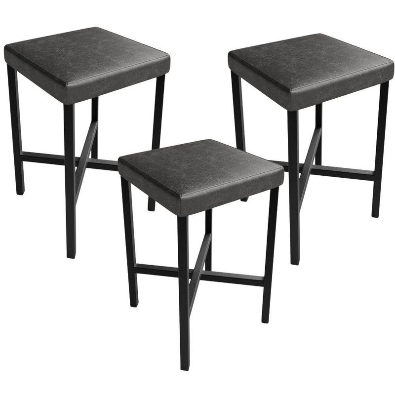 Kit 03 Banquetas Baixa Bar Cozinha Sala De Jantar Preto Stella L02 Couríssimo Preto - Lyam Decor