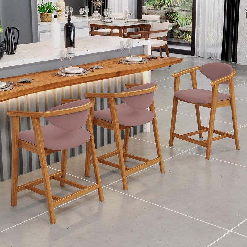 Crie um ambiente sofisticado e acolhedor com o Kit 03 Banquetas Baixa Cecília, da Lyam Decor. Com design moderno essa banqueta é uma peça muito versátil, pois você pode aproveitá-la em diversos ambientes, desde cozinha, sala de jantar, bancada até a área gourmet ou bar e, assim, agregar o máximo de beleza e conforto. Afinal, essa banqueta de madeira se destaca pela sua estrutura robusta que resistência e durabilidade. Já o assento estofado oferece o máximo conforto, enquanto o encosto proporciona suporte ergonômico sem igual. Combinando elegância e praticidade, essa banqueta baixa com encosto é perfeita para quem deseja um toque de requinte em qualquer ambiente. Adicione um charme especial ao seu lar com essa peça indispensável. Adicione ao seu carrinho e desfrute momentos de alegria com a Banqueta Cecília! Dimensões da Banqueta (L x A x P) 51 x 90 x 47 cm Medidas Internas: Altura do chão ao assento: 60 cm Assento livre (L x A x P): 44 x 4,5 x 46,5 cm Encosto livre (L x A): 41 x 22 cm Altura total do encosto: 33 cm Altura interna do braço: 18 cm Altura do chão ao início do braço: 76 cm Altura do chão ao apoio de pés: 17 cm Largura interna do apoio de pés: 27 cm Altura do apoio de pés: 4,5 cm Características: Estrutura em madeira de reflorestamento de eucalipto vermelho tratado. Revestimento em tecido Suede de alta qualidade na cor Rosê. Assento e encosto fixos tapeçados com espuma D-28. Encosto com design curvo para maior conforto e ergonomia. Pés em madeira maciça envernizada na cor Nozes. Peso suportado: Até 120 kg. - Nunca sentar nos braços ou encosto do produto. - Por se tratar de estofado as medidas podem ter uma pequena variação de até 3 cm. - A tonalidade do produto real poderá ter ligeira variação devido o lote de tecidos. - Indicado para uso residencial, sua limpeza deve ser feita com pano levemente umedecido em água limpa, sem esfregar, não utilizar produtos abrasivos, desengordurantes, álcool ou solvente. Observações importantes: - Produto para uso residencial em ambiente interno, não devendo ficar exposto diretamente ao sol, calor e umidade excessivos. - Pode haver alguma diferença de tonalidade entre a imagem e o produto real, por conta do tratamento de imagens e a calibração de cores do seu monitor. - As imagens são meramente ilustrativas, não acompanham objetos de decoração e eletrônicos. - Ao receber a mercadoria, o cliente deve verificar as condições da embalagem, caso haja alguma avaria não assine o comprovante de recebimento e entre em contato com nossa loja para orientações. - Montagem, desmontagem e outras instalações serão de responsabilidade do cliente. Não nos responsabilizamos, no ato da entrega, por subir escadas/elevadores ou pelo transporte por guincho em apartamentos. Eventuais despesas são de responsabilidade do comprador. - Confira as dimensões do produto e certifique-se de que passará normalmente por supostos elevadores, portas, escadas e/ou corredores de sua residência. - Para mais informações, acesse nossa Central de Atendimento.