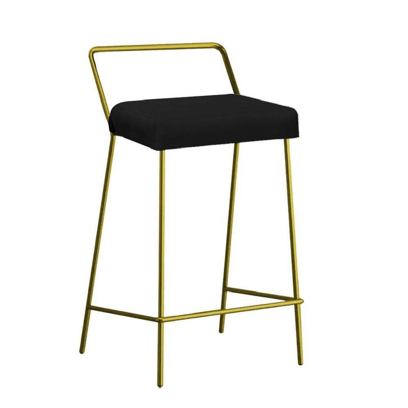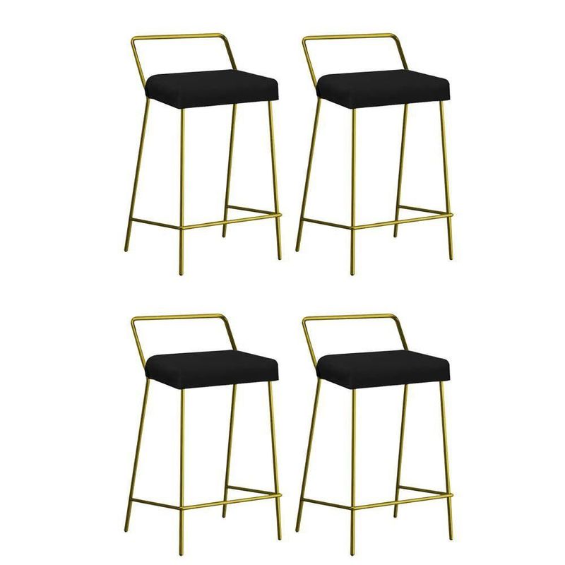 Kit 04 Banqueta Alta Com Encosto Donna Industrial Cozinha Bistrô Ferro Dourado Corino Preto - Ahazzo MóveisBANQUETA DONNA - Ahazzo MóveisIdeal para ambientes de lazer com sua família e amigos, possui estrutura reforçado para maior conforto.CARACTERÍSTICAS:- Largura: 37 cm;- Altura: 88 cm;- Profundidade: 40 cm;- Altura do chão até o assento: 75 cm;- Produto estofado;- Pés em ferro de excelente qualidade.OBSERVAÇÕES:- Limpar com flanela limpa e seca. Não molhar o móvel e não expor em lugar úmido ou próximo de fontes de calor. Não usar produtos abrasivos;- As imagens ambientadas são meramente ilustrativas e podem apresentar itens que não compõe o produto;- Objetos decorativos que aparecem na foto não acompanham o produto;- As cores do produto podem variar de acordo com o monitor, a iluminação do ambiente, ou sua percepção visual;- Confira as dimensões antes da compra e certifique-se de que o produto passará por elevadores, portas e corredores, já que nossa entrega não inclui a subida de lances de escada, ou o lançamento de produtos;- Ao receber seus produtos, verifique no ato do recebimento qualquer dano na embalagem. A transportadora pode esperar a conferência do produto;- Produto para uso residencial em ambiente interno, não devendo ficar exposto diretamente ao sol, calor e umidades excessivas.