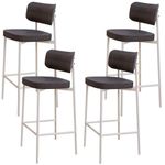 MóveisCozinhaBanquetaKit 04 Banquetas Alta Bar Cozinha Sala De Jantar Aço Branco Kaira C01 Linho Preto - Lyam Decor