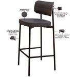 MóveisCozinhaBanquetaKit 04 Banquetas Alta Bar Cozinha Sala De Jantar Aço Preto Kaira C01 Linho Preto - Lyam Decor