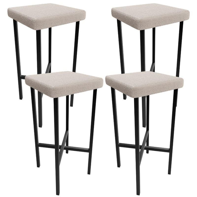 Kit 04 Banquetas Alta Bar Cozinha Sala De Jantar Preto Stella L02 Bouclê Creme - Lyam Decor