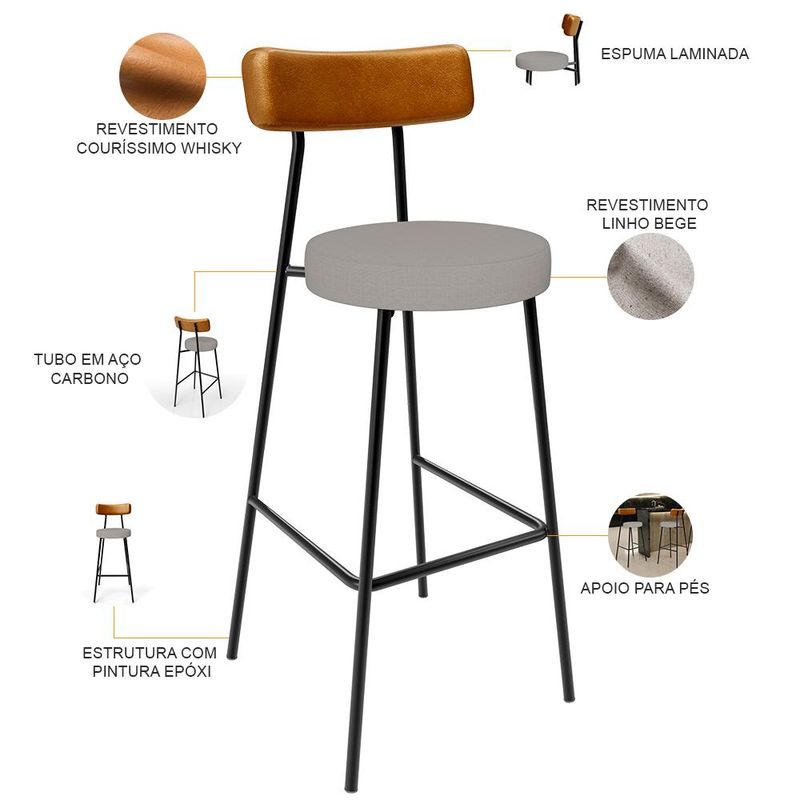 Amplamente moderna, dispondo de muito realce e design singular, o Kit 04 Banquetas Alta Cozinha Sala De Jantar Aço Milão L02 Couríssimo Whisky Linho Bege - Lyam Decor vem com a personalidade e elegância que sua decoração merece! Estruturada em aço carbono, contrasta lindamente com o encosto e assento estofados, cabe mencionar ainda o revestimento do seu encosto em Couríssimo e do assento em Linho, é confeccionada por materiais de excelente qualidade, extremamente resistentes e aconchegantes. Possui altura ideal, garantindo o encaixe perfeito no ambiente, otimizando seu espaço e promovendo máximo conforto. Pode ser disposta em bancada, cozinha americana, área gourmet ou home bar, as possibilidades são infinitas e as combinações ficarão perfeitas. Adquira já a sua!! Dimensões do Produto (L x A x P) 44 x 100 x 52 cm Medidas Internas: Altura do chão ao assento: 75 cm Altura do chão ao apoio para pés: 29 cm Altura do assento: 6 cm Largura do assento: 34 cm Altura do assento ao encosto: 26 cm Altura do encosto: 11 cm Largura do encosto: 40 cm Profundidade do encosto: 6 cm Características: Encosto e assento estofados com espuma laminada. Revestimento do encosto em Couríssimo na cor Whisky e assento revestido em Linho na cor Bege, com acabamento semi brilho. Estrutura fixa em aço carbono com pintura epóxi na cor preto. Pés com ponteiras plásticas, que permitem maior resistência e qualidade sem riscar o piso. Peso suportado de até 120 kg. Produto entregue desmontado, acompanha manual de montagem. - Por se tratar de estofado as medidas podem ter uma pequena variação de até 3 cm. - A tonalidade do produto real poderá ter ligeira variação devido o lote de tecidos. - A limpeza deve ser feita com pano levemente umedecido em água limpa, sem esfregar, não utilizar produtos abrasivos, desengordurantes, álcool ou solvente. Observações importantes: - Produto para uso residencial em ambiente interno, não devendo ficar exposto diretamente ao sol, calor e umidade excessivos. - Pode haver alguma diferença de tonalidade entre a imagem e o produto real, por conta do tratamento de imagens e a calibração de cores do seu monitor. - As imagens são meramente ilustrativas, não acompanham objetos de decoração e eletrônicos. - Ao receber a mercadoria, o cliente deve verificar as condições da embalagem, caso haja alguma avaria não assine o comprovante de recebimento. - Montagem, desmontagem e outras instalações serão de responsabilidade do cliente. Não nos responsabilizamos, no ato da entrega, por subir escadas/elevadores ou pelo transporte por guincho em apartamentos. Eventuais despesas são de responsabilidade do comprador. - Confira as dimensões do produto e certifique-se de que passará normalmente por supostos elevadores, portas, escadas e/ou corredores de sua residência.