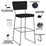 O espetáculo que é o Kit 04 Banquetas Alta Bar Cozinha Sala De Jantar Fixa Allana L02 Suede Preto - Lyam Decor vem para agregar ainda mais valor na decoração da sua casa. Sua estrutura em aço remete-nos ao estilo industrial que surgiu em Nova York no século XX, já o assento e encosto estofados trazem equilíbrio e conforto criando a combinação perfeita para o ambiente. Podendo ser disposta em bancada, cozinha americana, espaço gourmet ou home bar, ela se destaca com muita elegância e presença. Conta com materiais de máxima qualidade e está sempre pronta para recepcionar família e amigos de forma agradável. Você e seu lar merecem, aproveite!! Dimensões do produto (L x A x P) 45 x 102 x 55 cm Medidas Internas: Altura do encosto: 23 cm Altura total do encosto: 28 cm Largura do encosto: 39 cm Profundidade do encosto: 03 cm Altura do assento: 06 cm Largura do assento: 40 cm Profundidade do assento: 40 cm Altura do chão ao assento: 75 cm Altura do chão ao apoio de pés: 34 cm Largura da parte de trás da base: 37 cm Características: Estrutura em madeira compensada anatômica. Revestimento em Suede Preto de alta qualidade. Assento e encosto com espuma D-23 e acabamento em Debrum. Peso suportado: Até 100 kg. Estrutura de aço redondo maciço 3/8 polegadas, com ponteira antiderrapante em abs. Pintura eletrostática epóxi de alta resistência à riscos e umidade, na cor preto. - Por se tratar de estofado as medidas podem ter uma pequena variação de até 3 cm. - A tonalidade do produto real poderá ter ligeira variação devido o lote de tecidos. - A limpeza deve ser feita com pano levemente umedecido em água limpa, sem esfregar, não utilizar produtos abrasivos, desengordurantes, álcool ou solvente. Observações importantes: - Produto para uso residencial em ambiente interno, não devendo ficar exposto diretamente ao sol, calor e umidade excessivos. - Pode haver alguma diferença de tonalidade entre a imagem e o produto real, por conta do tratamento de imagens e a calibração de cores do seu monitor. - As imagens são meramente ilustrativas, não acompanham objetos de decoração e eletrônicos. - Ao receber a mercadoria, o cliente deve verificar as condições da embalagem, caso haja alguma avaria não assine o comprovante de recebimento. - Montagem, desmontagem e outras instalações serão de responsabilidade do cliente. Não nos responsabilizamos, no ato da entrega, por subir escadas/elevadores ou pelo transporte por guincho em apartamentos. Eventuais despesas são de responsabilidade do comprador. - Confira as dimensões do produto e certifique-se de que passará normalmente por supostos elevadores, portas, escadas e/ou corredores de sua residência.