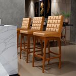Entregando muita excelência, o Kit 04 Banquetas Altas Para Cozinha Sala de Jantar Fixa Mila L02 Couríssimo Whisky - Lyam Decor é o complemento que faltava para deixar sua casa ainda mais extraordinária. Seu encosto com costura em padrão quadriculado e assento estofados, centralizam em si uma graciosidade estonteante, sem perder todo o conforto. A estrutura em madeira, na cor nozes, também é digna de notoriedade, por imprimir bastante personalidade a sua decoração. Vale ressaltar ainda, o apoio para os pés que garante maior segurança à mesma. Pode ser acomodado em cozinha americana, ambientes integrados, espaços gourmets, bancadas ou em seu home bar, independente do lugar, desperta logo de cara bastante elegância e deixa tudo mais despojado, kit perfeito para criar um ambiente harmonioso e agradável para receber a família e amigos, quando favorável. Não perca tempo e adquira já a sua!! Dimensões do produto (L x A x P) 38 x 106 x 46,5 cm Medidas Internas: Altura do encosto: 34 cm Largura do assento: 40 cm Profundidade do assento: 34 cm Altura do chão ao assento: 72 cm Características: Estrutura em madeira de reflorestamento de eucalipto vermelho tratado. Revestimento em Couríssimo Whisky de alta qualidade, com acabamento semi brilho. Assento com espuma D-28. Encosto com espuma D-28. Peso suportado: Até 130 kg. Estrutura de Madeira na cor Nozes. - Por se tratar de estofado as medidas podem ter uma pequena variação de até 3 cm. - A tonalidade do produto real poderá ter ligeira variação devido o lote de tecidos. - A limpeza deve ser feita com pano levemente umedecido em água limpa, sem esfregar, não utilizar produtos abrasivos, desengordurantes, álcool ou solvente. Observações importantes: - Produto para uso residencial em ambiente interno, não devendo ficar exposto diretamente ao sol, calor e umidade excessivos. - Pode haver alguma diferença de tonalidade entre a imagem e o produto real, por conta do tratamento de imagens e a calibração de cores do seu monitor. - As imagens são meramente ilustrativas, não acompanham objetos de decoração e eletrônicos. - Ao receber a mercadoria, o cliente deve verificar as condições da embalagem, caso haja alguma avaria não assine o comprovante de recebimento. - Montagem, desmontagem e outras instalações serão de responsabilidade do cliente. Não nos responsabilizamos, no ato da entrega, por subir escadas/elevadores ou pelo transporte por guincho em apartamentos. Eventuais despesas são de responsabilidade do comprador. - Confira as dimensões do produto e certifique-se de que passará normalmente por supostos elevadores, portas, escadas e/ou corredores de sua residência.