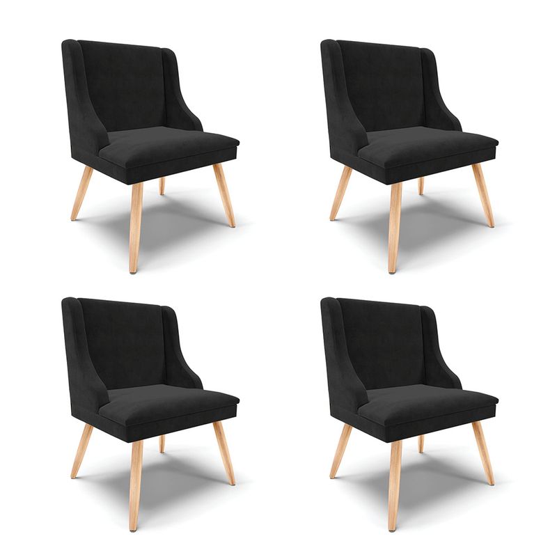 A cozinha é um lugar muito importante da casa, não é mesmo? É onde a maioria das pessoas além de cozinhar passam mais tempo conversando. E você merece um lugar aconchegante. Pensando nisso, preparamos para você nossa linda cadeira de jantar Liz. Com estrutura ecologicamente correta de madeira de eucalipto e pinus, oferece durabilidade e qualidade ao móvel, seu estofamento é com espuma de densidade D-23, revestido em tecido em Suede no tom Preto, que oferece muito conforto e resistência ao sentar, com aquela sensação de maciez e bem-estar. Escolha já sua cor favorita. Dimensões Altura total: 85 cm Largura total: 55 cm Profundidade total: 55 cm Altura do encosto: 40 cm Largura do assento: 45 cm Profundidade do assento: 50 cm Altura do chão ao assento: 45 cm Espessura do assento: 10 cm Tamanho dos pés: 35 cm Peso: 9 kg Especificações do Produto Estrutura: Madeira Eucalipto Espuma: D-23 Tecido: Suede Tipo de pés: Palito Palito Natural Peso suportado: Até 120 Kg Garantia: 90 dias contra defeito de fabricação Montagem: O produto vai montado, apenas rosquear os pés Instruções de limpeza: Utilizar um pano limpo e levemente úmido Você irá receber: 02 volumes com 04 produtos Observações Relevantes - Todos os produtos vão embalados com total segurança; - As cores dos produtos podem sofrer alterações dependendo do seu monitor; - Para futuras compras, não garantimos a mesma tonalidade de cor, pois existe variação a cada lote do fabricante do tecido; - As imagens são meramente ilustrativas, não acompanham objetos de decoração e eletros; - Confira as dimensões do produto no momento da compra e certifique-se de que passará normalmente por escadas, elevadores, portas e corredores; - Importante: Por se tratar de estofado as medidas podem ter uma pequena variação em até 3 cm; - Não nos responsabilizamos no ato da entrega por montagens, desmontagens, instalações de produtos; - Não nos responsabilizamos no ato da entrega por subir escadas, elevadores, nem utilização de guinchos ou equipamentos similares para acesso a pisos superiores em apartamentos; - A entrega do produto é realizada em todo território nacional, até onde as rodovias alcançam, entregas fluviais ou aéreas devem ser cotadas a parte; - Observando as orientações acima, evita-se futuros desagrados ou imprevistos com a entrega do produto. Havendo despesas adicionais, serão de responsabilidade do cliente;