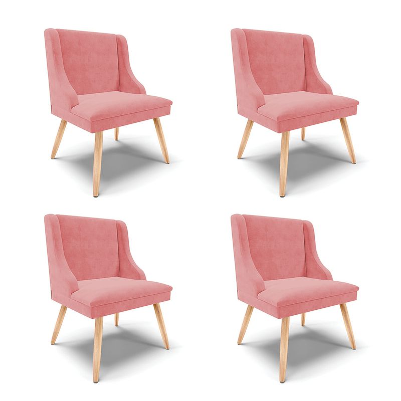 A cadeira Liz na decoração da cozinha traz um charme e aconchego de maneira simples. Porém, aqui na D'Rossi, o simples pode ser muito e bem elaborado! Com estrutura ecologicamente correta de madeira de eucalipto e pinus, oferece durabilidade e qualidade ao móvel, seu estofamento é com espuma de densidade D-23, revestido em tecido em Suede no tom Rose, que oferece muito conforto e resistência ao sentar, com aquela sensação de maciez e bem-estar. Escolha sua cadeira de jantar e receba amigos e familiares em um espaço ainda mais bonito e confortável! Dimensões Altura total: 85 cm Largura total: 55 cm Profundidade total: 55 cm Altura do encosto: 40 cm Largura do assento: 45 cm Profundidade do assento: 50 cm Altura do chão ao assento: 45 cm Espessura do assento: 10 cm Tamanho dos pés: 35 cm Peso: 9 kg Especificações do Produto Estrutura: Madeira Eucalipto Espuma: D-23 Tecido: Suede Tipo de pés: Palito Palito Natural Peso suportado: Até 120 Kg Garantia: 90 dias contra defeito de fabricação Montagem: O produto vai montado, apenas rosquear os pés Instruções de limpeza: Utilizar um pano limpo e levemente úmido Você irá receber: 02 volumes com 04 produtos Observações Relevantes - Todos os produtos vão embalados com total segurança; - As cores dos produtos podem sofrer alterações dependendo do seu monitor; - Para futuras compras, não garantimos a mesma tonalidade de cor, pois existe variação a cada lote do fabricante do tecido; - As imagens são meramente ilustrativas, não acompanham objetos de decoração e eletros; - Confira as dimensões do produto no momento da compra e certifique-se de que passará normalmente por escadas, elevadores, portas e corredores; - Importante: Por se tratar de estofado as medidas podem ter uma pequena variação em até 3 cm; - Não nos responsabilizamos no ato da entrega por montagens, desmontagens, instalações de produtos; - Não nos responsabilizamos no ato da entrega por subir escadas, elevadores, nem utilização de guinchos ou equipamentos similares para acesso a pisos superiores em apartamentos; - A entrega do produto é realizada em todo território nacional, até onde as rodovias alcançam, entregas fluviais ou aéreas devem ser cotadas a parte; - Observando as orientações acima, evita-se futuros desagrados ou imprevistos com a entrega do produto. Havendo despesas adicionais, serão de responsabilidade do cliente;