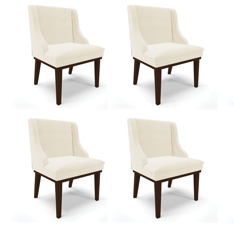 Kit 04 Cadeiras de Jantar Liz Veludo Base Fixa Madeira Tabaco - D'Rossi