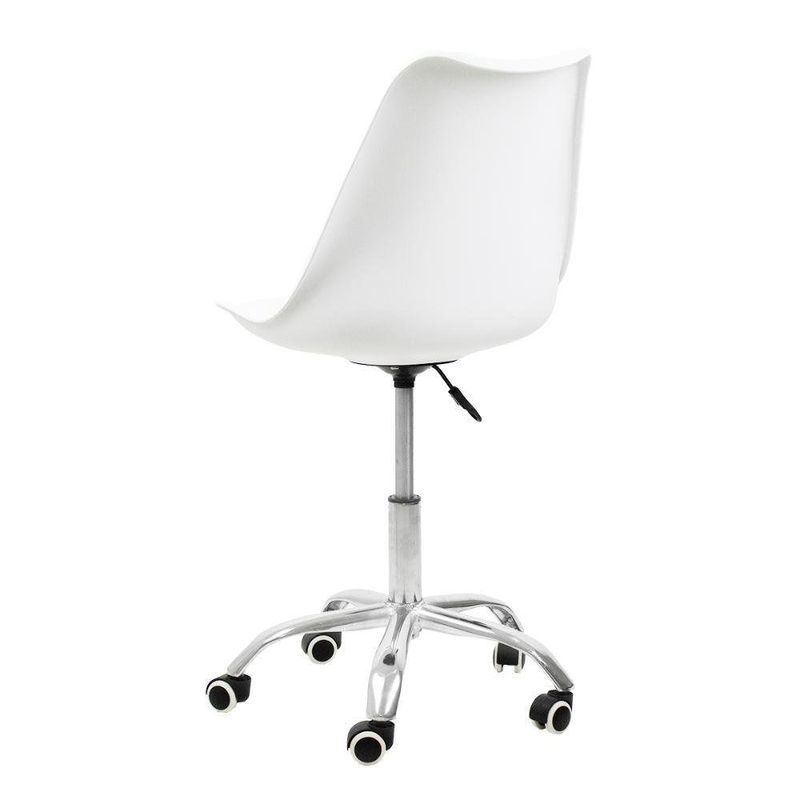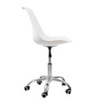 Kit 04 Cadeiras Office Base Cromada Giratória Saarinen BrancoCadeira Office Base Cromada Com Rodizio Giratória SaarinenPara quem busca dar vida e sofisticação ao ambiente e conforto a Cadeira Giratória Saarinen é uma ótima opção. Ela se adapta a qualquer ambiente e é forte tendência em decoração. Projetadas para combinar com qualquer ambiente que você desejar usá-las: para sala de jantar, cozinha, no quarto ou escritório, áreas de lazer, e ambientes comerciais.Aproveite ao máximo o ajuste de altura desta cadeira. Isso lhe permitirá adaptar a posição do seu tronco em relação à mesa, proporcionando um nível de conforto específico para suas necessidades individuais.A Cadeira Giratória Saarinen é feita em polipropileno com assento revestido por material sintético, apresentando uma alta qualidade e excelente acabamento. Ela é versátil, com a altura do assento ajustável. Isso permite que você a regule de acordo com as suas necessidades, o que garante um maior conforto.O modelo conta com uma base giratória cromada e rodinhas. Isso facilita consideravelmente a sua locomoção no ambiente de trabalho. Além disso, a cadeira é muito bonita e elegante, combinando com qualquer ambiente. É uma ótima aquisição que deixará a sua sala de trabalho com uma aparência ainda mais respeitável, além de garantir maior conforto para você. AlturaTotal: 83 - 96 cmAssento até o chão: 60 - 47 cmEncosto: 42 cm Largura1 Perna: 30 cm2 Pernas: 67 cmAssento: 48 cmEncosto: 48 cm ComprimentoEncosto: 2 cmAssento: 41 cmPeso: 6 kgEstrutura: Polipropileno e aço cromadoRevestimento: Couro SintéticoAssento: Madeira multilaminadaPeso máximo recomendado: 120 Kg