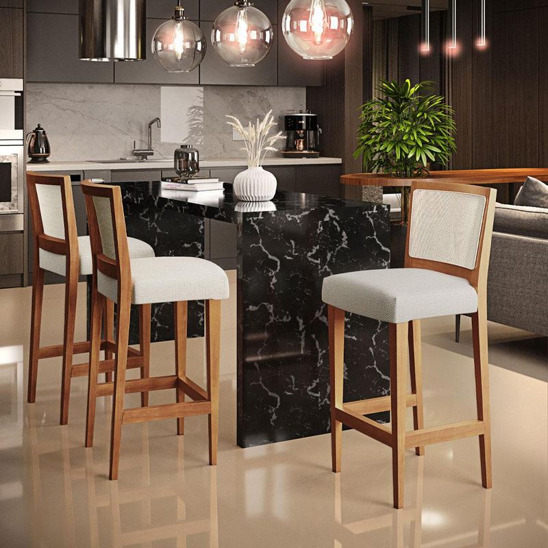 Um clássico que nunca sai de moda! O Kit 05 Banquetas Alta Para Cozinha Sala de Jantar Fixa Telado Branco Zion L02 Linho Champagne - Lyam Decor, possui um estilo rustico que faltava para deixar sua casa ainda mais clássica. Seu encosto com o detalhe de tela sintética na cor branca trazem ainda mais estilo e destaque para sua decoração, junto com assento estofado que proporciona horas de conforto. A estrutura e o apoio para os pés, são responsáveis por garantir maior segurança à mesma. Pode ser acomodada em cozinha americana, ambientes integrados, espaços gourmets, bancadas ou em seu home bar, independente do lugar, ela desperta logo de cara o bom gosto e elegância, deixando tudo mais despojado, perfeita para criar um ambiente harmonioso e agradável para receber a família e amigos, sempre com muita receptividade! Características: Estrutura em madeira de reflorestamento de eucalipto vermelho tratado. Revestimento em Linho Champagne de alta qualidade. Assento com espuma D-23. Encosto de madeira com tela sintética. Peso suportado: Até 130 kg. Apoio para os pés. Dimensões do produto (L x A x P) 41,5 x 103 x 50 cm Altura do chão ao assento: 75 cm Altura do encosto: 31 cm Largura do encosto: 41,5 cm Profundidade do encosto: 3,5 cm Altura do assento: 10,5 cm Largura do assento: 42,5 cm Profundidade do assento: 38,5 cm Altura do apoio para os pés: 5 cm - Por se tratar de estofado as medidas podem ter uma pequena variação de até 3 cm. - A tonalidade do produto real poderá ter ligeira variação devido o lote de tecidos. Observações importantes: - Produto para uso residencial em ambiente interno, não devendo ficar exposto diretamente ao sol, calor e umidade excessivos. - Pode haver alguma diferença de tonalidade entre a imagem e o produto real, por conta do tratamento de imagens e a calibração de cores do seu monitor. - As imagens são meramente ilustrativas, não acompanham objetos de decoração e eletrônicos. - Ao receber a mercadoria, o cliente deve verificar as condições da embalagem, caso haja alguma avaria não assine o comprovante de recebimento. - Montagem, desmontagem e outras instalações serão de responsabilidade do cliente. Não nos responsabilizamos, no ato da entrega, por subir escadas/elevadores ou pelo transporte por guincho em apartamentos. Eventuais despesas são de responsabilidade do comprador. - Confira as dimensões do produto e certifique-se de que passará normalmente por supostos elevadores, portas, escadas e/ou corredores de sua residência.