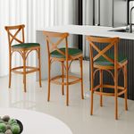 As banquetas têm ocupado um papel de destaque na decoração qualquer ambiente, pensando nisso a Banqueta Ávila chega trazendo um design moderno, confortável e prático. Seu assento estofado traz charme e entrega o conforto ideal a você e sua família. Quando o assunto é versatilidade, ela se propõe a agradar todos os estilos e se encaixar em bares, áreas gourmet, bancadas, cozinhas, salas de jantar e estar e até restaurantes. Sua estrutura em madeira maciça, garante segurança e ainda adiciona toques de elegância e harmonia ao seu espaço. Garanta estilo ao seu ambiente e adquira já a sua!! Dimensões do produto (L x A x P) 50 x 103 x 56 cm Medidas Internas: Altura do encosto: 30 cm Altura do chão ao assento: 77 cm Largura do assento: 44 cm Profundidade do assento: 43 cm Largura total do encosto: 50 cm Altura do chão ao apoio de pés: 29,5 cm Largura do encosto: 36,5 cm Características: Estrutura em Madeira Maciça, com acabamento envernizado. Revestimento em Couríssimo na cor Verde Musgo, de alta qualidade. Assento estofado com espuma D-23. Suporta até 150 kg. - Produto entregue montado. - Por se tratar de estofado as medidas podem ter uma pequena variação de até 3 cm. - A tonalidade do produto real poderá ter ligeira variação devido o lote de tecidos. - A limpeza deve ser feita com pano umedecido em água limpa, sem esfregar, não utilizar produtos abrasivos, desengordurantes, álcool ou solvente. Observações importantes: - Produto para uso residencial em ambiente interno, não devendo ficar exposto diretamente ao sol, calor e umidade excessivos. - Pode haver alguma diferença de tonalidade entre a imagem e o produto real, por conta do tratamento de imagens e a calibração de cores do seu monitor. - As imagens são meramente ilustrativas, não acompanham objetos de decoração e eletrônicos. - Ao receber a mercadoria, o cliente deve verificar as condições da embalagem, caso haja alguma avaria não assine o comprovante de recebimento. - Montagem, desmontagem e outras instalações serão de responsabilidade do cliente. Não nos responsabilizamos, no ato da entrega, por subir escadas/elevadores ou pelo transporte por guincho em apartamentos. Eventuais despesas são de responsabilidade do comprador. - Confira as dimensões do produto e certifique-se de que passará normalmente por supostos elevadores, portas, escadas e/ou corredores de sua residência.