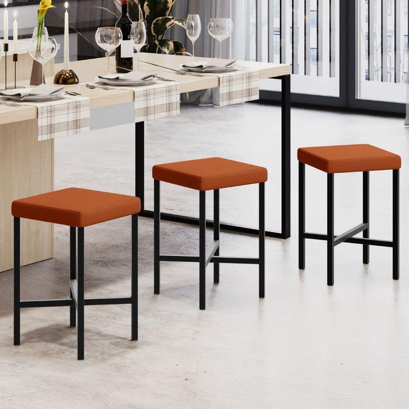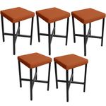 Kit 05 Banquetas Baixa Bar Cozinha Sala De Jantar Preto Stella L02 Tecido Terracota - Lyam Decor