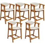 Transforme qualquer ambiente em um espaço sofisticado com o Kit 05 Banquetas Baixa Cecília, da Lyam Decor. Esse kit de banquetas combina design moderno e funcionalidade, já que é ideal para cozinha, sala de jantar, bancada ou área gourmet. Além disso, são feitas com madeira de eucalipto vermelho tratado, o que garante durabilidade e sustentabilidade. Já o assento e encosto estofados com espuma de alta densidade proporcionam máximo conforto durante suas refeições ou momentos de descontração. A versatilidade dessa banqueta de madeira com encosto faz dela a escolha perfeita para quem busca elegância e praticidade em cada detalhe. Leve mais alegria aos momentos com a família e amigos com a Banqueta Cecília. Dimensões da Banqueta (L x A x P) 51 x 90 x 47 cm Medidas Internas: Altura do chão ao assento: 60 cm Assento livre (L x A x P): 44 x 4,5 x 46,5 cm Encosto livre (L x A): 41 x 22 cm Altura total do encosto: 33 cm Altura interna do braço: 18 cm Altura do chão ao início do braço: 76 cm Altura do chão ao apoio de pés: 17 cm Largura interna do apoio de pés: 27 cm Altura do apoio de pés: 4,5 cm Características: Estrutura em madeira de reflorestamento de eucalipto vermelho tratado. Revestimento em tecido Linho de alta qualidade na cor Champanhe. Assento e encosto fixos tapeçados com espuma D-28. Encosto com design curvo para maior conforto e ergonomia. Pés em madeira maciça envernizada na cor Nozes. Peso suportado: Até 120 kg cada. - Nunca sentar nos braços ou encosto do produto. - Por se tratar de estofado as medidas podem ter uma pequena variação de até 3 cm. - A tonalidade do produto real poderá ter ligeira variação devido o lote de tecidos. - Indicado para uso residencial, sua limpeza deve ser feita com pano levemente umedecido em água limpa, sem esfregar, não utilizar produtos abrasivos, desengordurantes, álcool ou solvente. Observações importantes: - Produto para uso residencial em ambiente interno, não devendo ficar exposto diretamente ao sol, calor e umidade excessivos. - Pode haver alguma diferença de tonalidade entre a imagem e o produto real, por conta do tratamento de imagens e a calibração de cores do seu monitor. - As imagens são meramente ilustrativas, não acompanham objetos de decoração e eletrônicos. - Ao receber a mercadoria, o cliente deve verificar as condições da embalagem, caso haja alguma avaria não assine o comprovante de recebimento e entre em contato com nossa loja para orientações. - Montagem, desmontagem e outras instalações serão de responsabilidade do cliente. Não nos responsabilizamos, no ato da entrega, por subir escadas/elevadores ou pelo transporte por guincho em apartamentos. Eventuais despesas são de responsabilidade do comprador. - Confira as dimensões do produto e certifique-se de que passará normalmente por supostos elevadores, portas, escadas e/ou corredores de sua residência. - Para mais informações, acesse nossa Central de Atendimento.